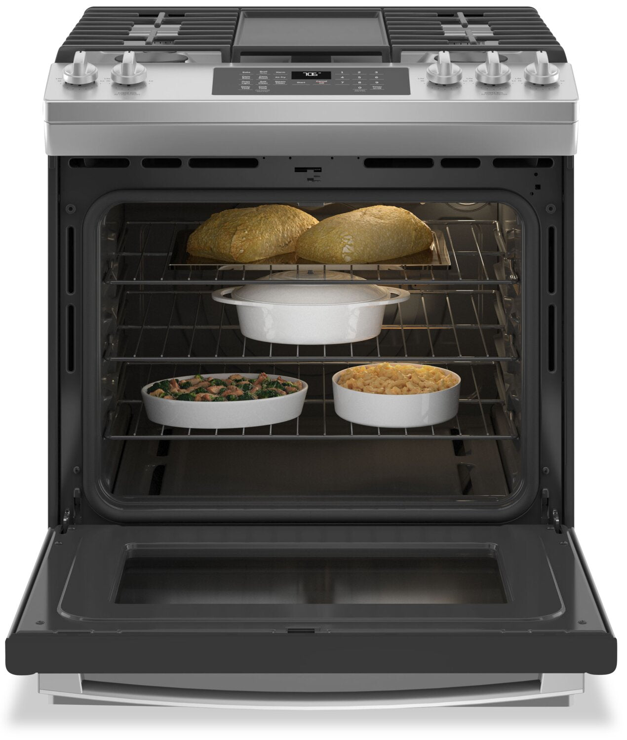 Reliable Convection Cooking: Edge-to-Edge Grates: Integrated Non-Stick Griddle: No-Preheat Air Fry: Self-Clean with Steam Clean: Storage Drawer: |