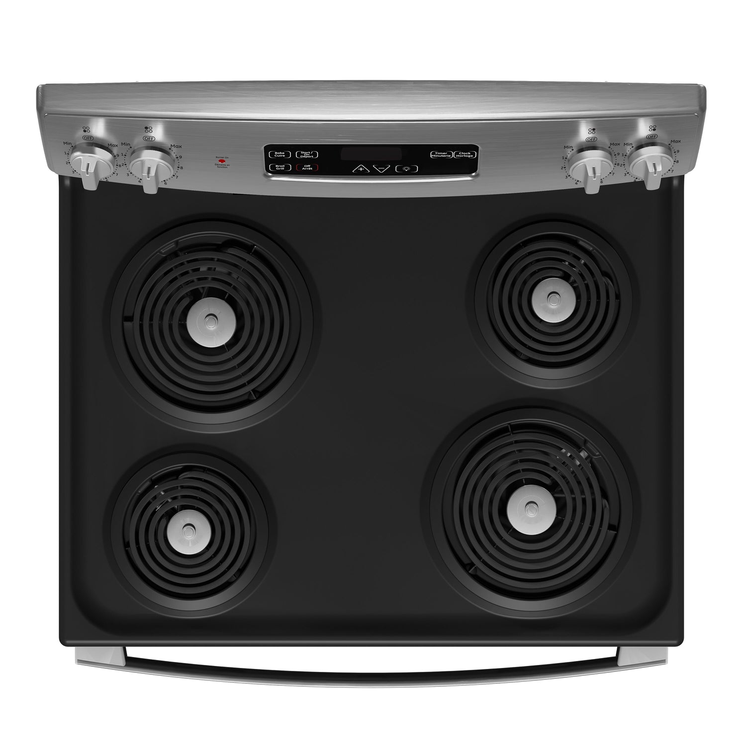 One-Piece Upswept Cooktop: Removable One-Piece Drop Bowls: Quick Clean Storage Drawer: |