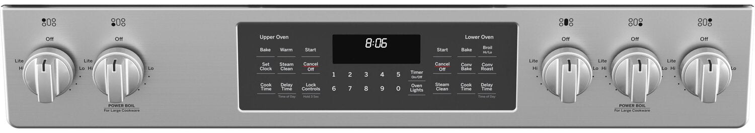 Edge-to-Edge Grates: Integrated Non-Stick Griddle: True European Convection: Air Fry: Self-Clean with Steam Clean: Double Oven: Centre Oval Burner: |