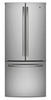 There’s a place for everything in this GE refrigerator. Featuring gallon door bins, humidity controlled crisper drawers and two levels of freezer storage, everything from ice cream to fresh produce is kept organized. Plus, an internal water dispenser provides a cool drink without taking up extra room. Get a good look at all of your groceries courtesy of the ramp up LED lighting that keeps the fridge illuminated from corner to corner. With a French-door design and fingerprint resistant stainless steel finish, this appliance is ready to impress.
