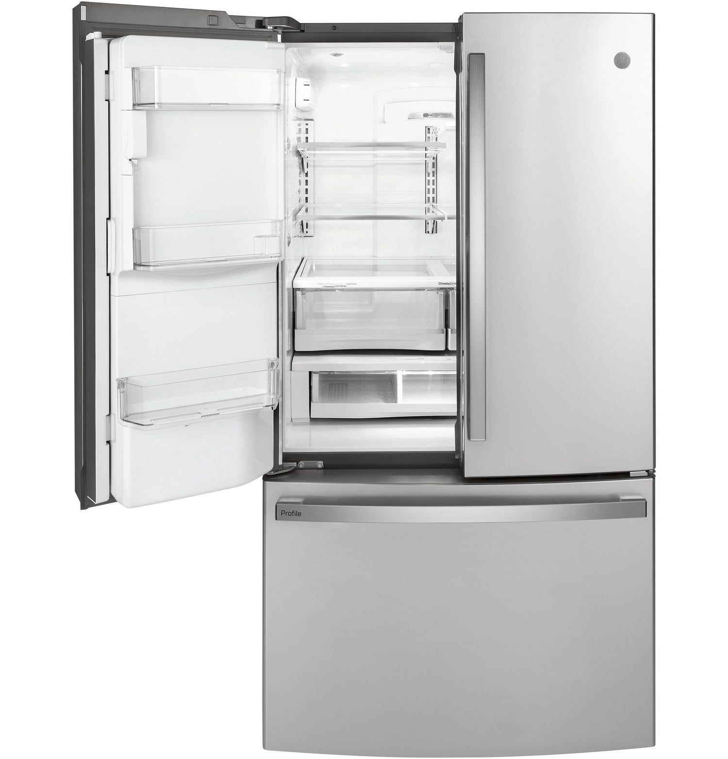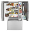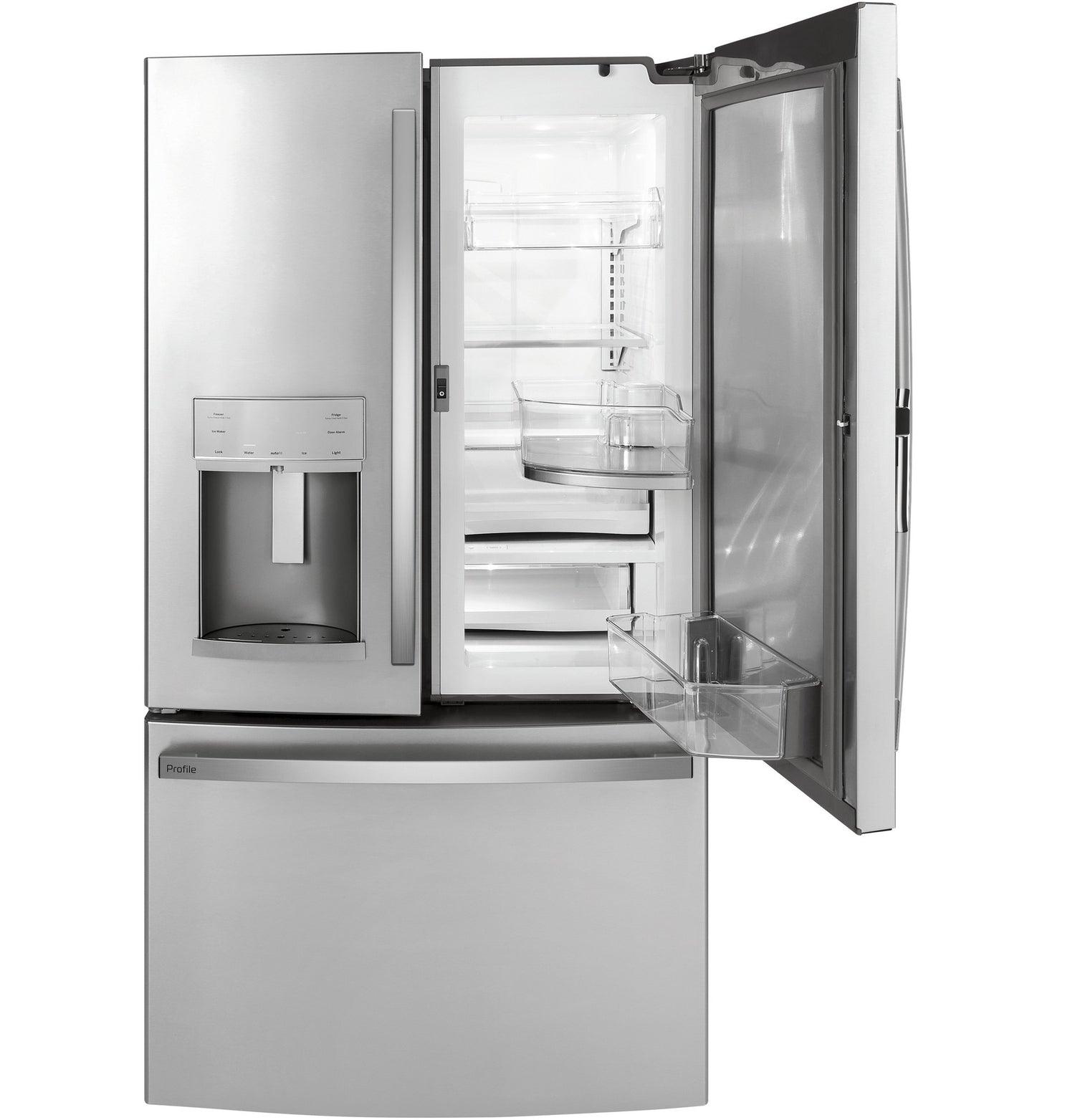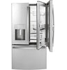 Add this Profile French-door refrigerator to your kitchen and enjoy all it has to offer. From the door-in-door storage to the adjustable spill-proof glass shelves, this refrigerator is designed with busy families in mind. Keep your fruits and veggies organized in the multi-level temperature-controlled drawers, which also include LED lights so you’ll always find what you’re looking for. Plus, fingerprint-resistant stainless steel offers a beautiful exterior that’s also easy to clean.