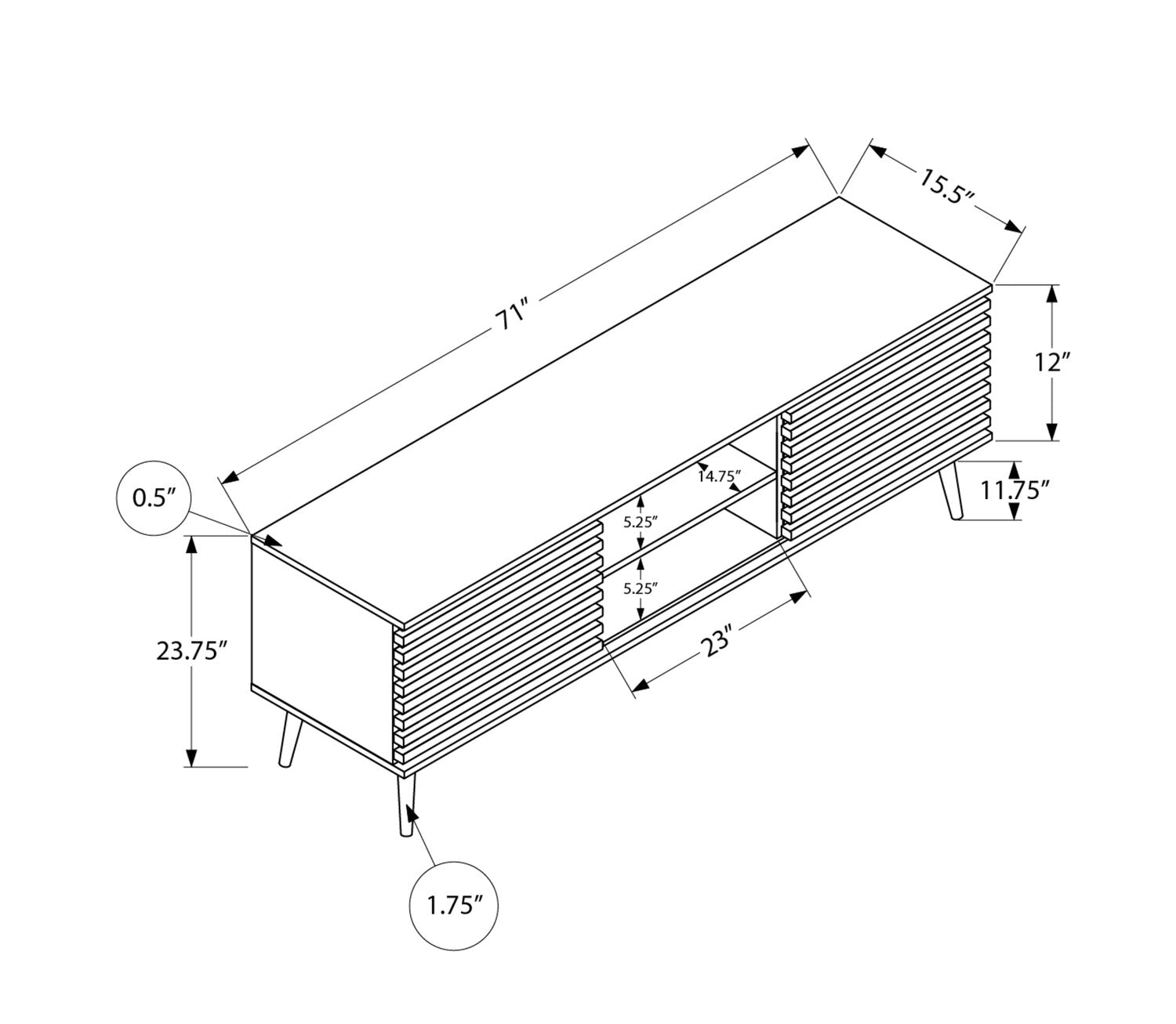 Width: 71" (180.3 cm) Height: 23.75" (60.3 cm) Depth: 15.5" (39.4 cm)