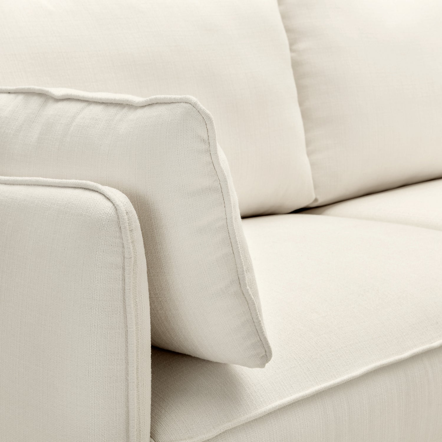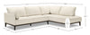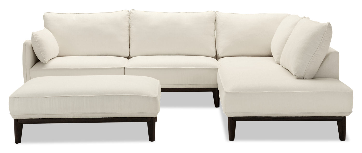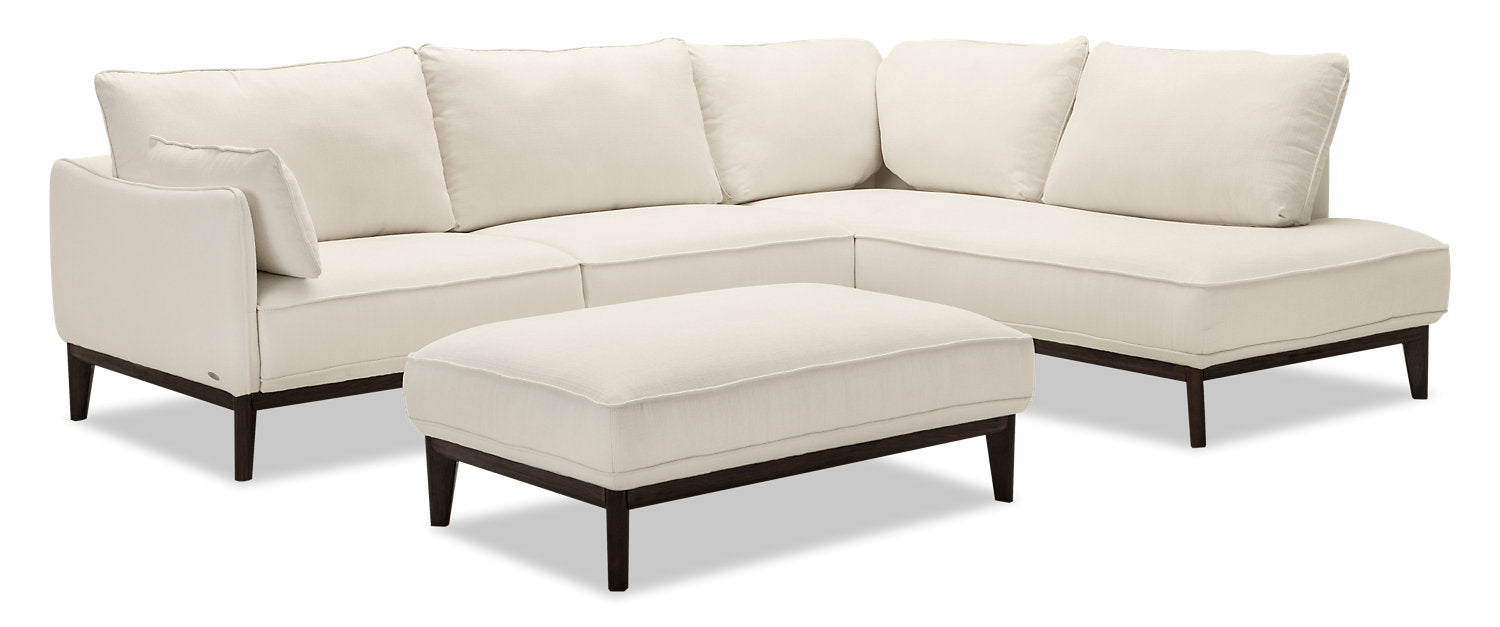 Part of the Cindy Crawford Home collection, create a chic effect in your home with this Gena two-piece, right-facing sectional. Elegant and stylish, white linen-look upholstery envelops this sectional to create a bright feeling in your space. You'll have no problem offering friends a seat on the sectional's high-density cushions, which are wrapped in fibre batting for an extra touch of comfort. Resting on a brown-hued solid wood base, this sectional sofa gives your home a sophisticated feel and a cozy resting place all in one.
