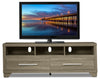 Find a home for your big screen television on this Glendale 60-inch TV stand. Open shelving provides the perfect spot to place your cable box and Blue-ray player, while the two drawers let you easily corral clutter – no more searching fruitlessly for the remote control. A cable management system makes it easy to keep your wires from getting tangled. Plus, the grey colour brings a light and airy feel to any home.