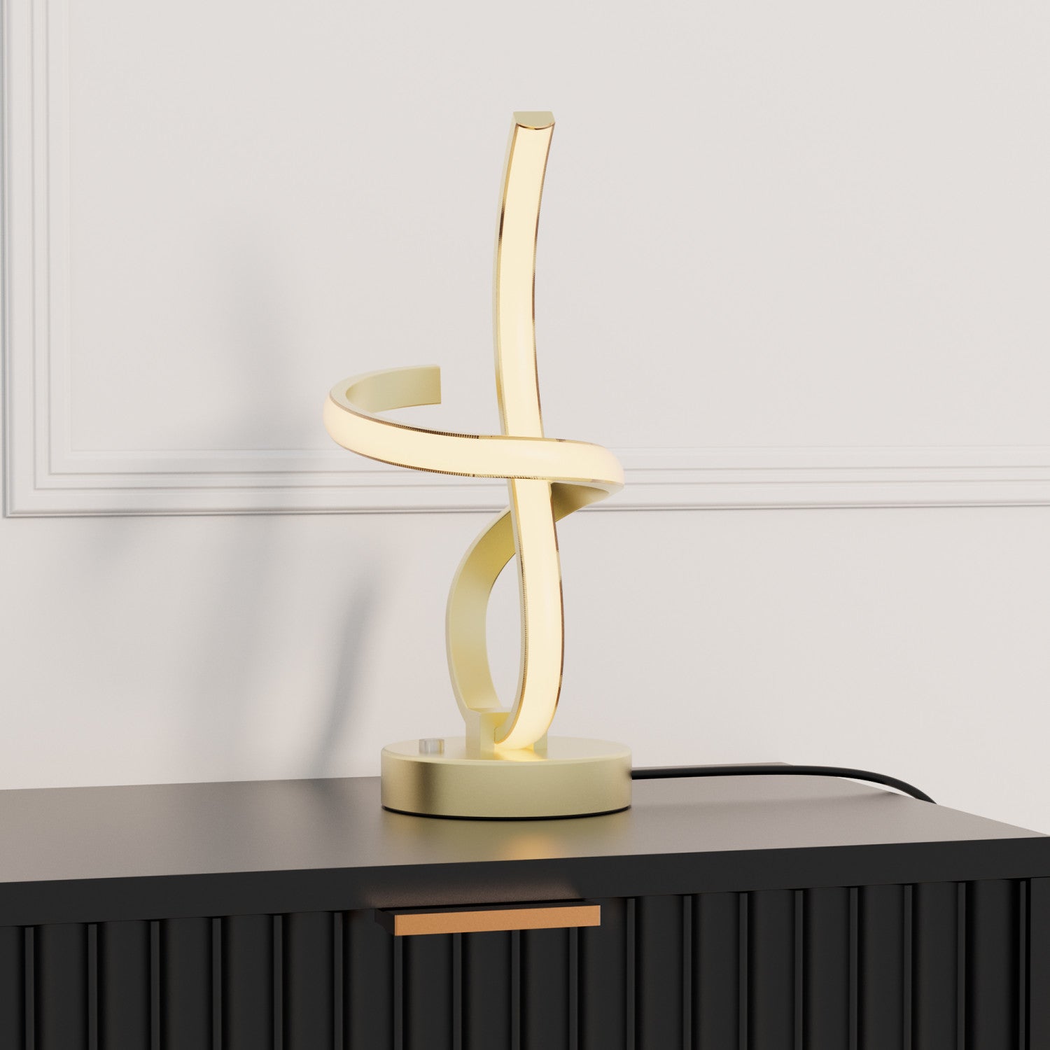 This table lamp showcases a stunning 16-inch design adorned with a captivating golden swirl. It casts a warm, inviting glow at 3000k, perfect for illuminating any desk or side table. With its touch dimming feature, you can easily adjust the brightness to suit your mood.
