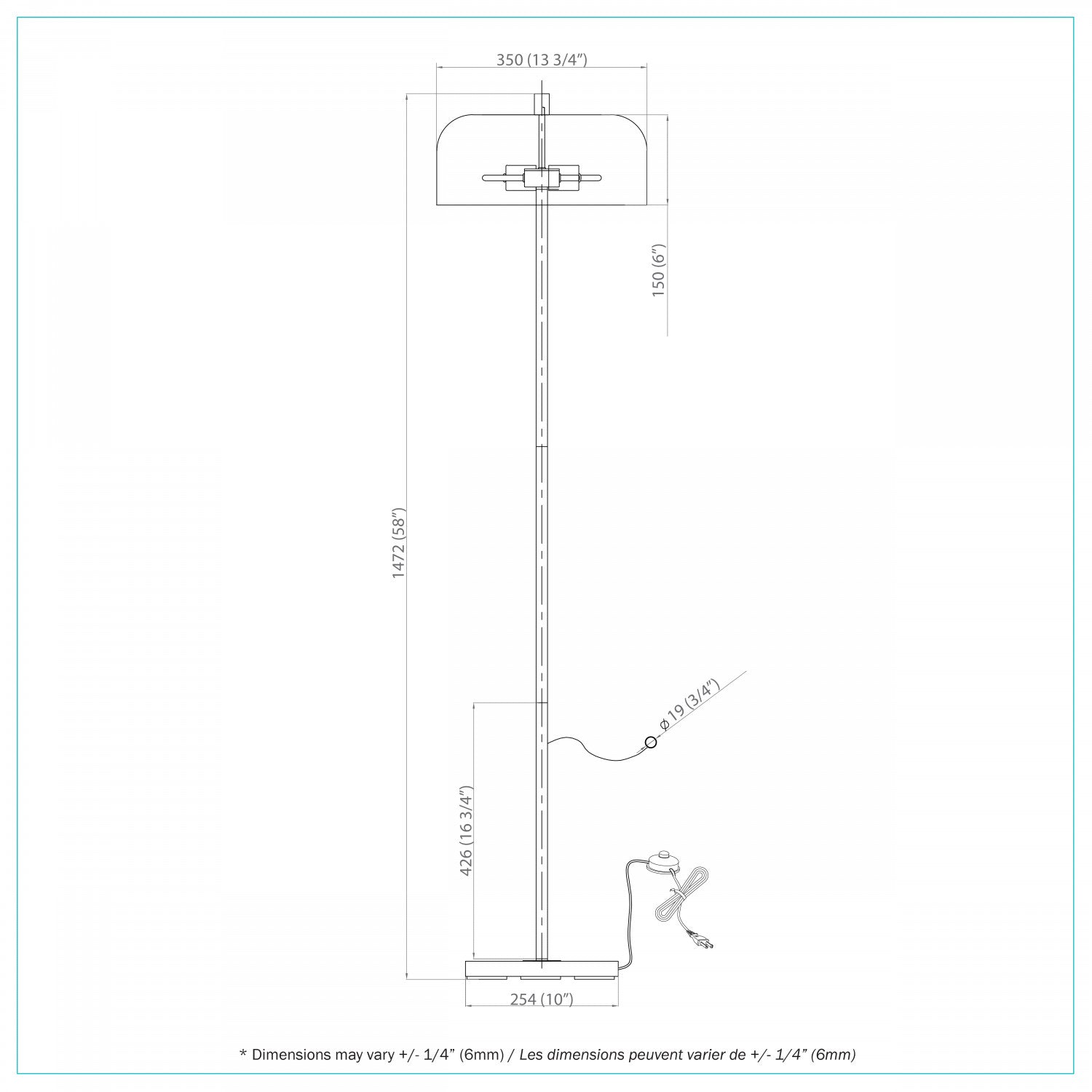 Width: 13.75" (34.9 cm) Height: 58" (147.3 cm) Depth: 13.75" (34.9 cm)