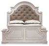 Embrace the feeling of having a secret, countryside retreat in your own home with this stunning Grace king bed. The antique white headboard and footboard feature gently sloping curves for a farmhouse charm. Light grey polyester on the headboard provides a soft, homey resting spot for your head. Adjustable support legs under the bed slats ensure this bed will remain a strong support for you no matter what. With wide wooden feet carrying you into slumber, this bed will help make your bedroom into the relaxing cottage of your dreams.