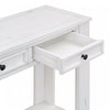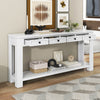 The console table offers generous storage and timeless style for your entryway, hallway, or living room. Crafted from solid wood and mdf, this 63-inch-wide table includes four drawers and a wide lower shelf to keep your essentials organized. A durable frame and distressed espresso finish enhance its rustic charm, while straight legs and clean lines lend a refined, high-end look. Whether placed behind a sofa or in a foyer, it adds both function and elegance. Simple assembly with all tools included.