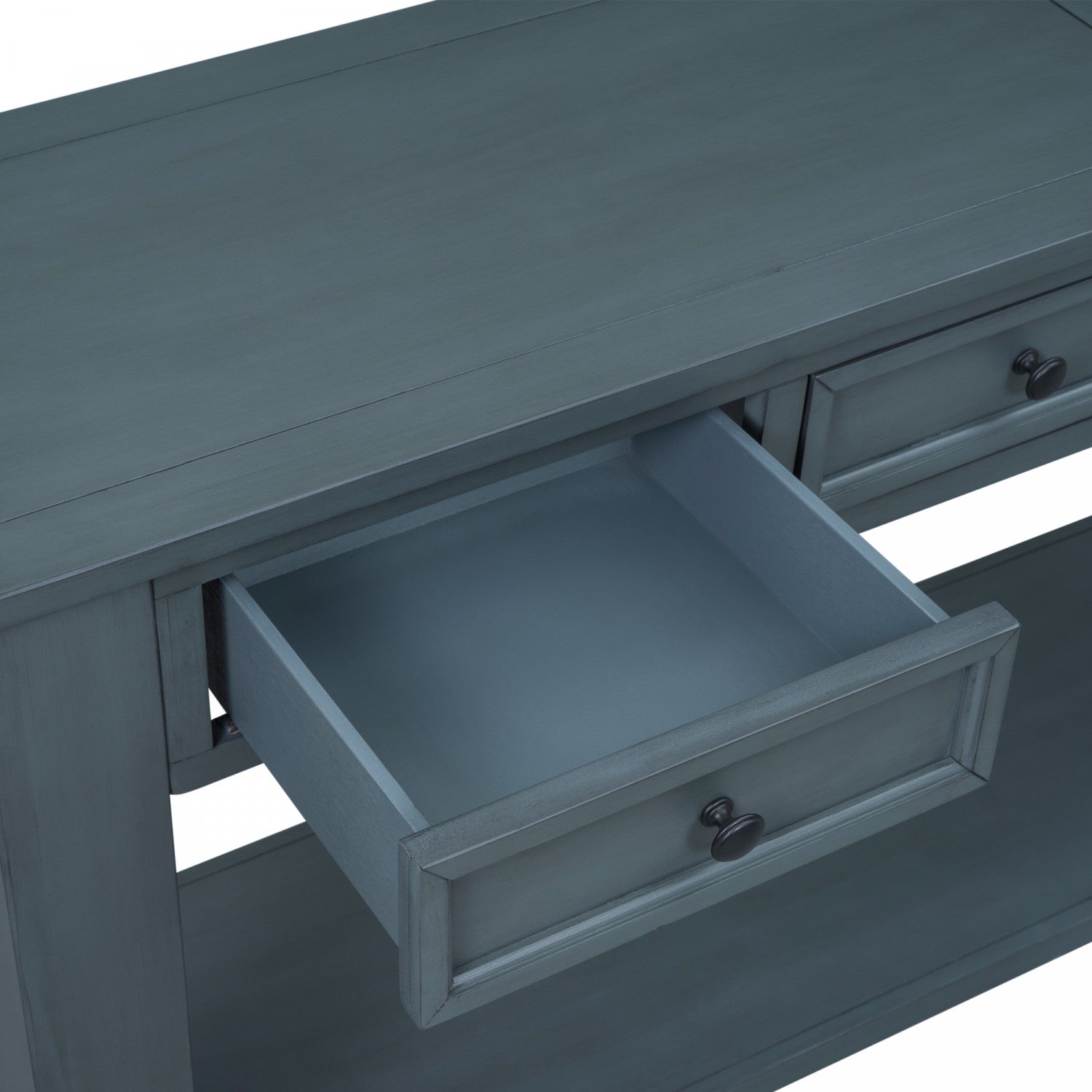 The console table offers generous storage and timeless style for your entryway, hallway, or living room. Crafted from solid wood and mdf, this 63-inch-wide table includes four drawers and a wide lower shelf to keep your essentials organized. A durable frame and distressed espresso finish enhance its rustic charm, while straight legs and clean lines lend a refined, high-end look. Whether placed behind a sofa or in a foyer, it adds both function and elegance. Simple assembly with all tools included.
