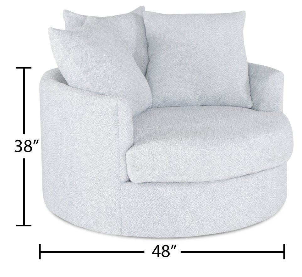 | Accent Details | Plush pillows and luscious chenille fabric give this chair a luxurious appearance. |