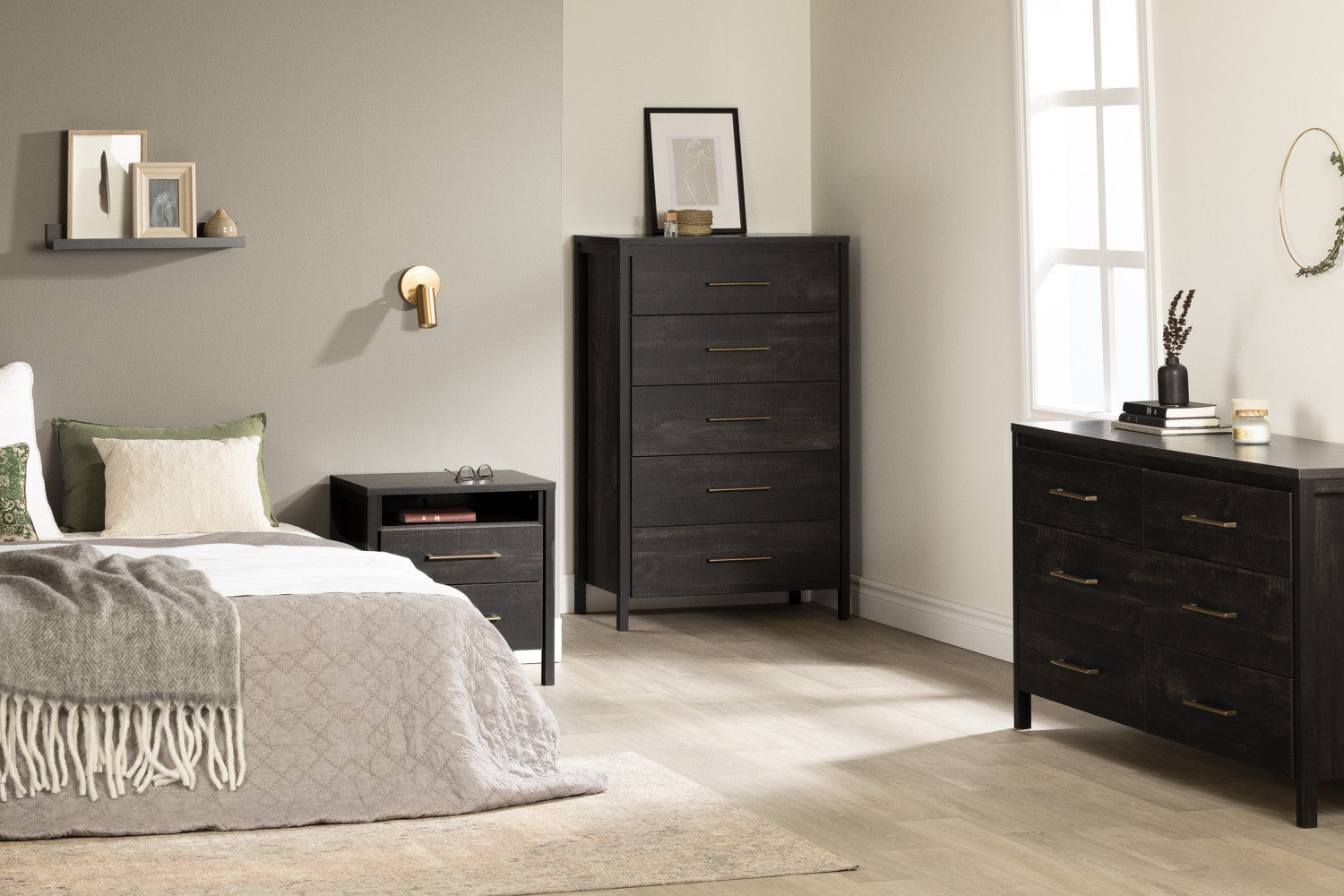 A more than practical dresser. Storage is a priority in the bedroom. You can’t have a restorative sleep if everything’s a mess! The six wide drawers on this dresser will help you sort and organize all your clothes, from summer tank tops to big winter sweaters. They’ll also be useful for storing your blankets and other bedding. And the wide top surface on this piece is great for showcasing accessories you’d like to keep close at hand, like perfume or makeup. A trendy contemporary style we love the clean contemporary look of this dresser, with the slim minimalist handles and small squared legs that make it stand out. It’ll add a more elegant, charming touch to the bedroom. Use the surface to round out your room decor by placing some frames and a large mirror on it.
