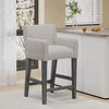 Add modern comfort to your kitchen or dining area with the counter stool. Featuring light gray fabric upholstery and a supportive 26" seat height, this stool offers a sleek blend of form and function. Rounded armrests and a classic h-frame rubberwood base create a timeless silhouette, while the sustainable hardwood frame provides lasting strength. Designed to complement contemporary interiors, the stool brings both style and comfort to everyday seating. Easy to assemble with included tools and instructions.
