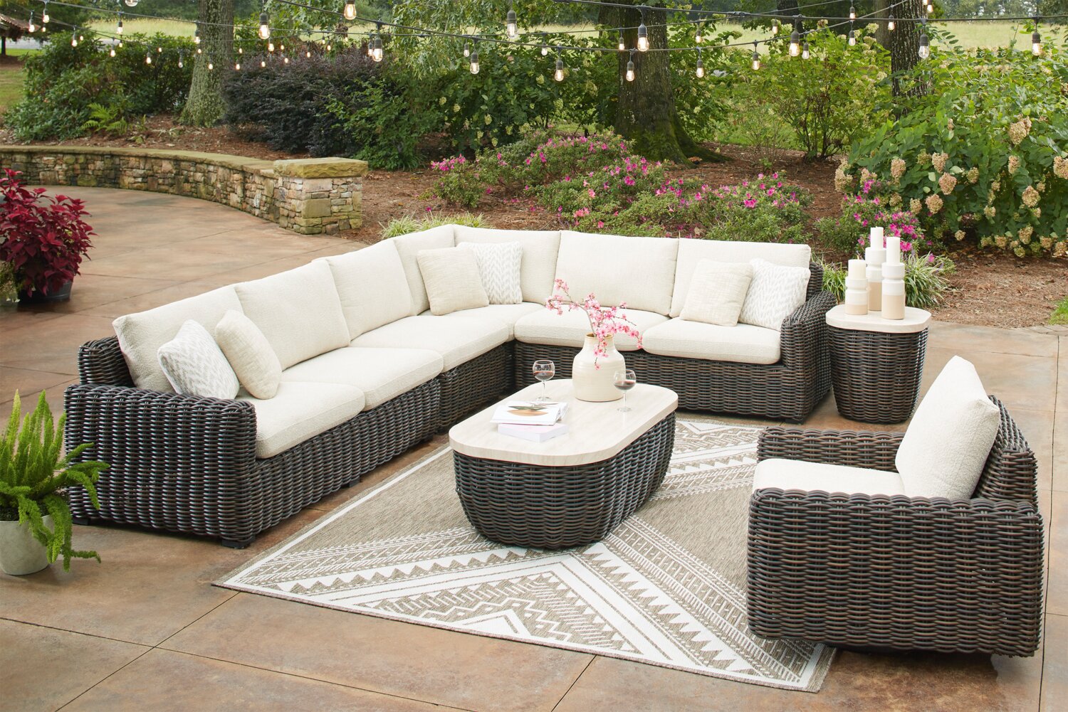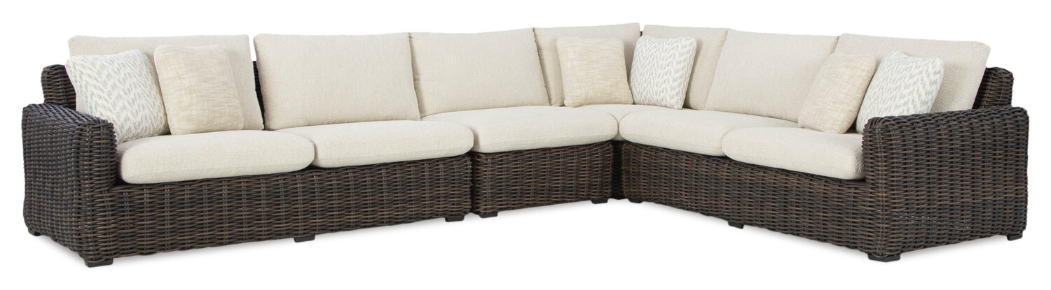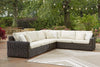 Halifax Outdoor Patio Corner Chair - Resin Wicker, Nuvella Fabric, UV & Weather Resistant - Beige/Brown