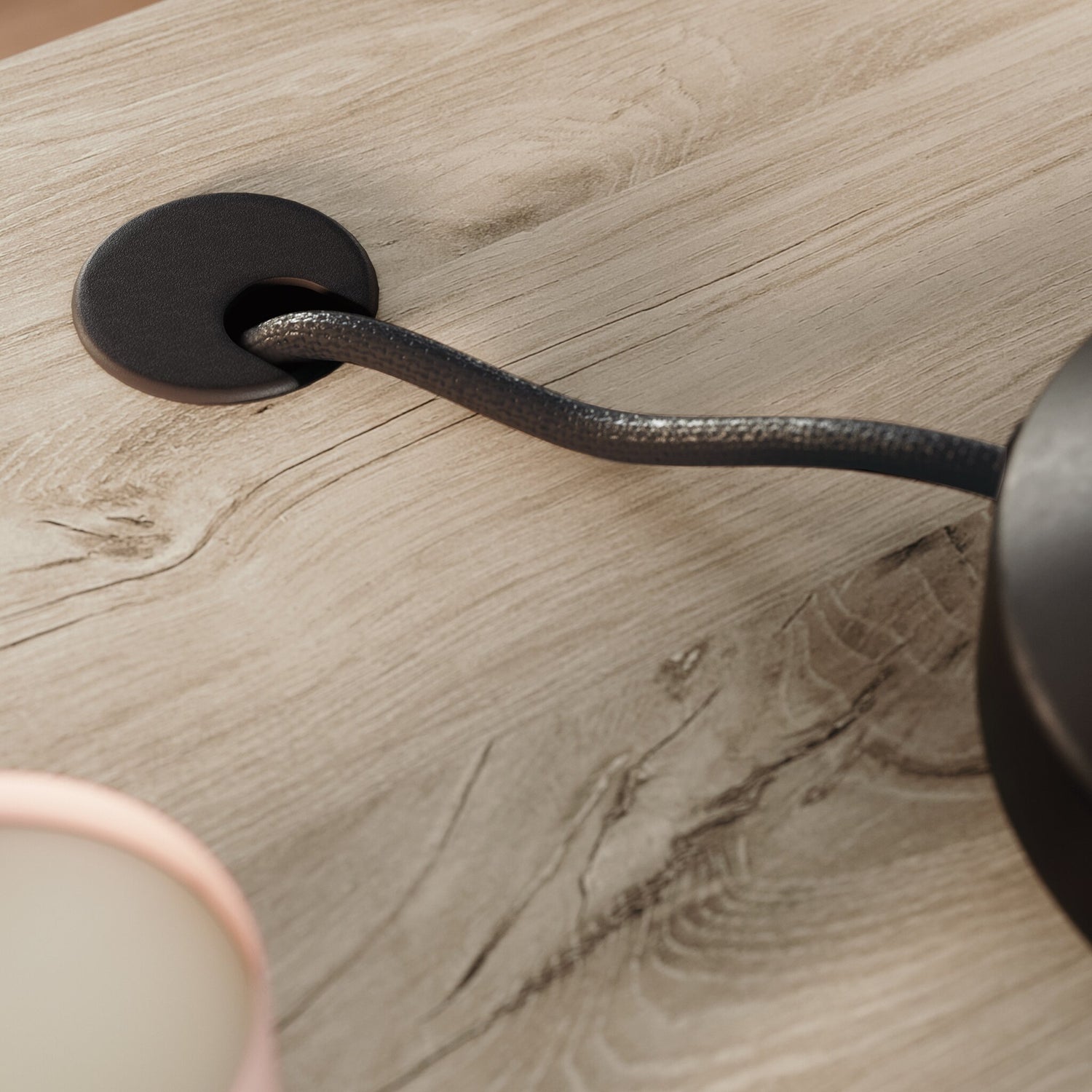 | Cable Management | Two desktop grommet holes keep your electronic cords organized and out of sight for a clutter-free workspace. |