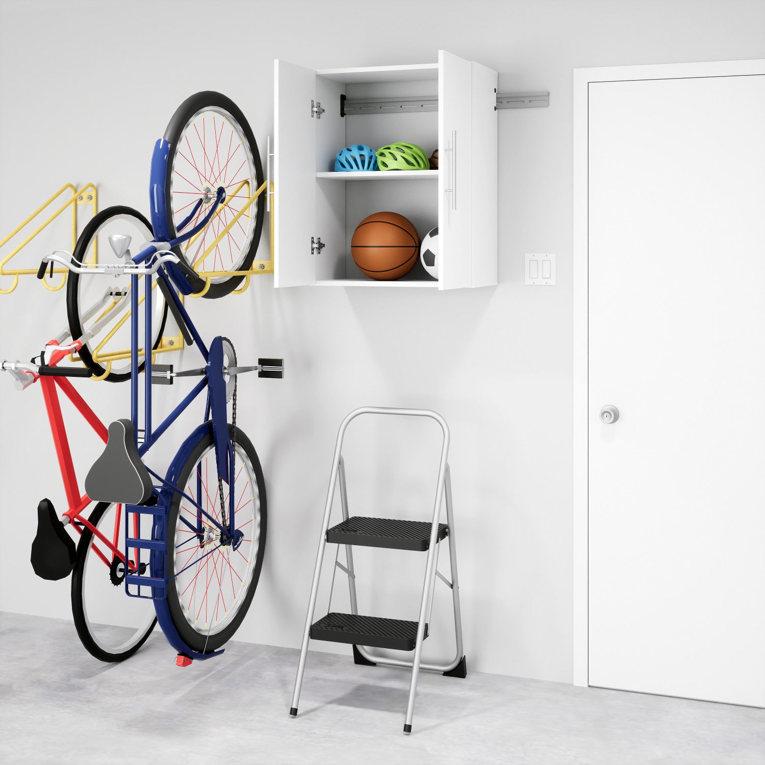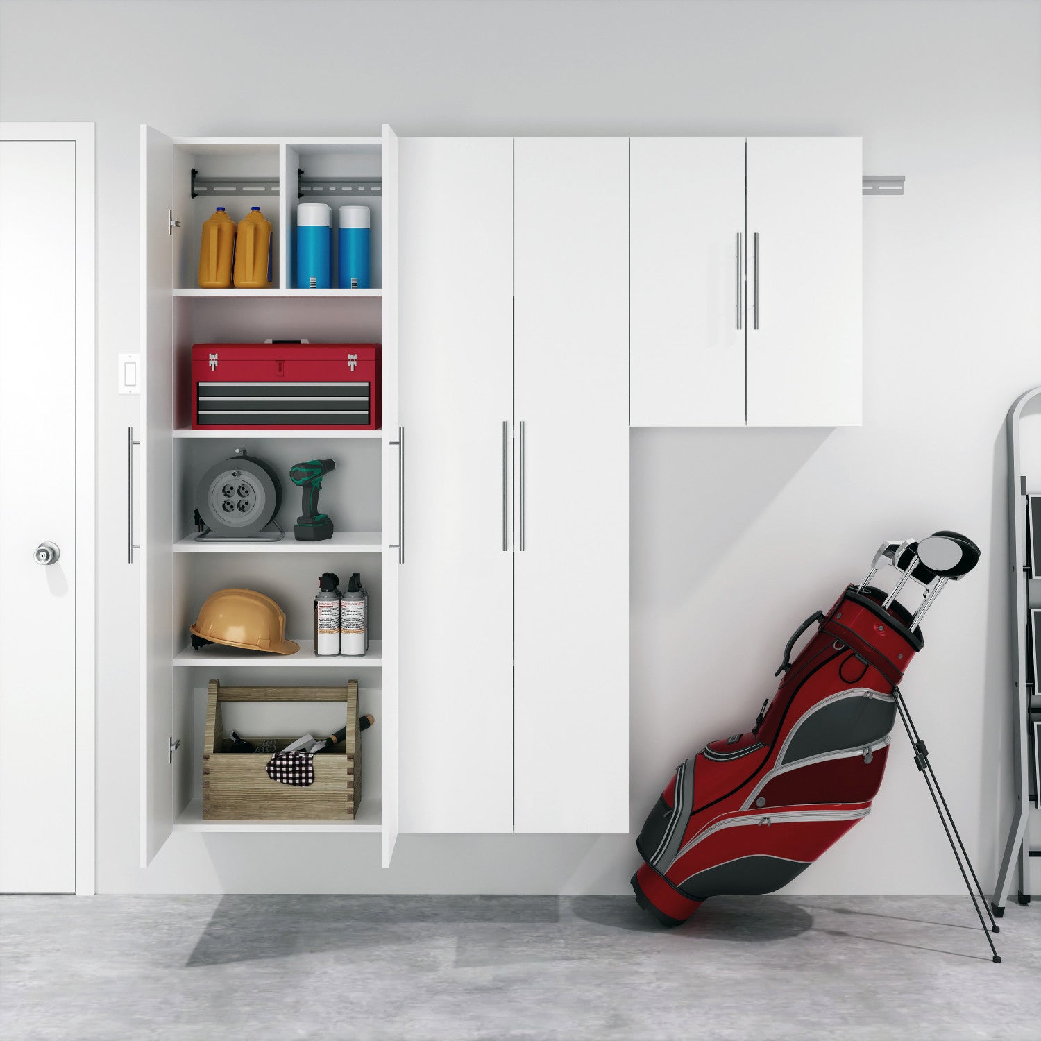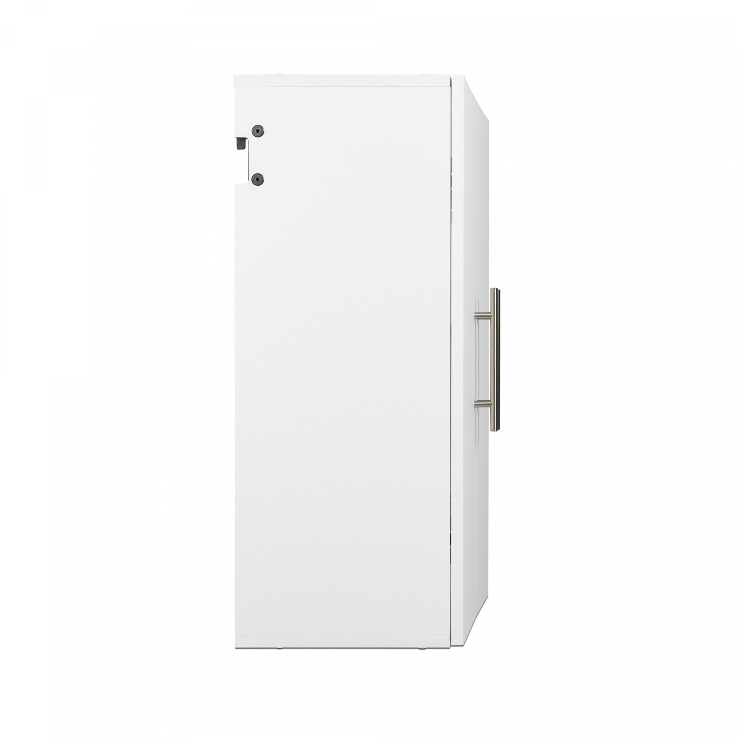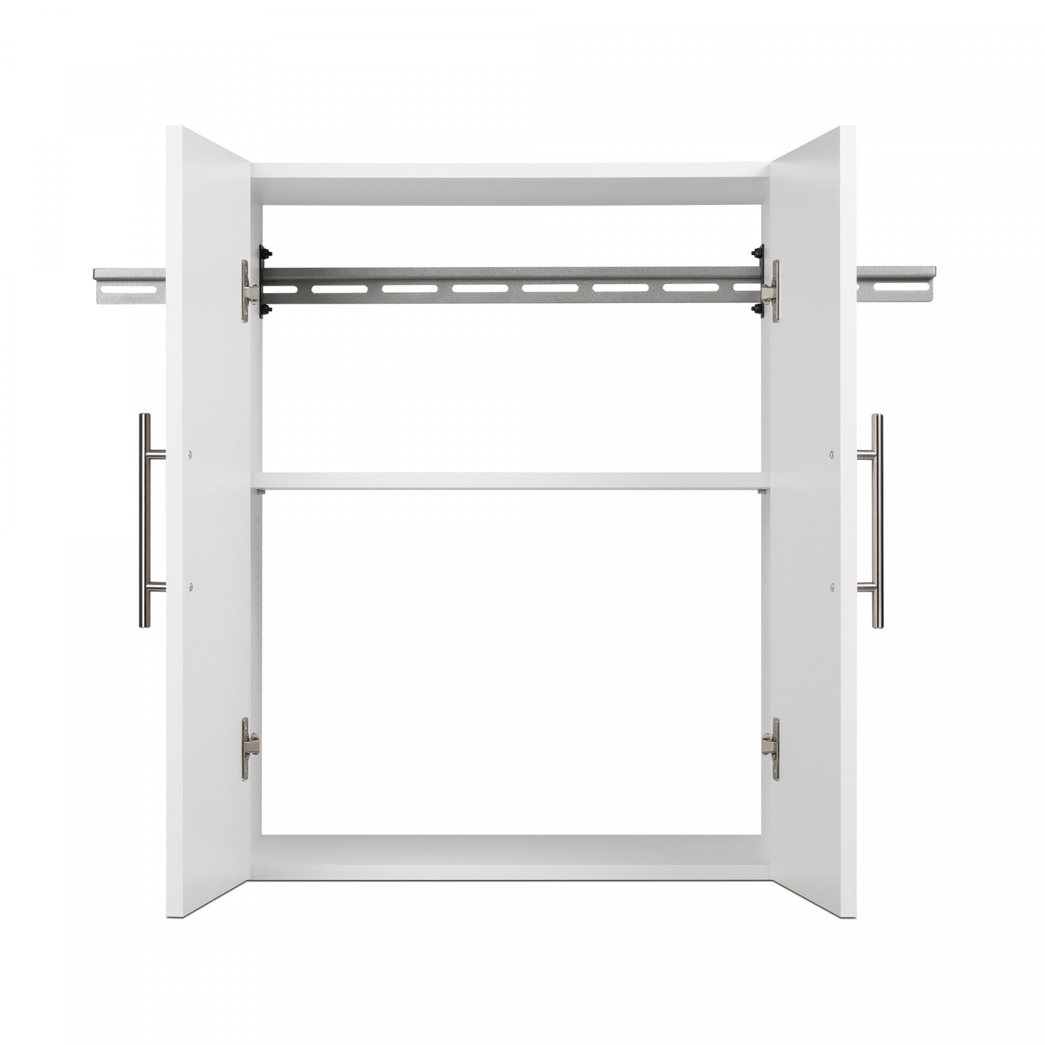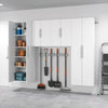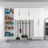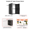 The HangUps 24 in. Upper Cabinet offers versatility for your ever changing storage needs in the garage, laundry room, office or workshop. The Upper Cabinet mounts securely to the wall with a heavy duty metal rail and hook system. The wall mounted feature ensures easy cleaning beneath the cabinets and protects your stored items from water and dirt. The HangUps Collection is constructed using laminated composite wood and features metal handles and adjustable hinges. This product ships ready-to-assemble and includes all hanging rails and fastening bolts. Add other cabinets from our HangUps Collection to create a storage system to convert any cluttered room into an organized space.
