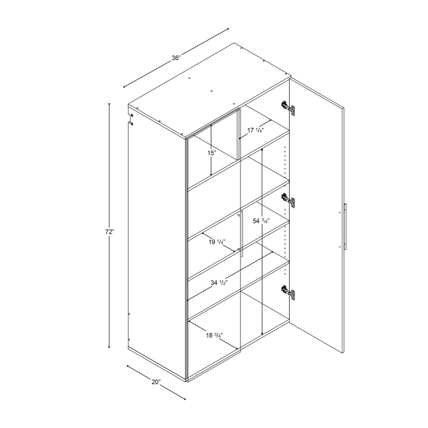 | Other Dimensions | Assembled Dimensions: 36 in W x 72 in H x 20 in D |