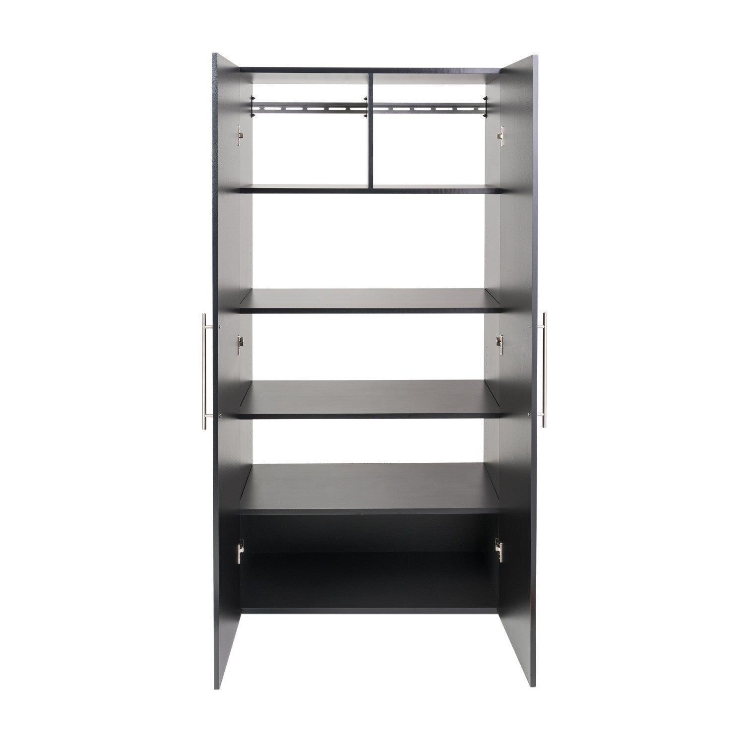 Introducing the hangups large bathroom dresser, an essential piece for home decor and a multipurpose solution for organization and storage for classroom spaces, bathroom, kitchen and more. This cabinet champions in bathroom organizers and storage solutions, featuring a sleek, wall-mounted design with two aesthetically pleasing, fully adjustable doors. Encased within these doors you'll find three modifiable shelves and an additional divided shelf, perfect for storing anything from classroom storage essentials to personal belongings. Coated in a fresh black laminate finish with shiny satin nickel-finished handles, this copious storage cabinet blends effortlessly with any decor, suitable for kitchen cabinets, bathroom storage cabinets or even as a stylish pantry cabinet. As a part of bathroom organizers and storage solutions, it provides ample space for all of your bathroom essentials, offering the perks of a bathroom storage closet and a bathroom storage organizer in one. Beyond a bathroom cabinet, this versatile piece is equally effective as classroom organization and storage, providing an ample amount of space for textbooks, stationery and other education essentials. Its robust build emulates the sturdiness of plastic storage containers with lids or storage bins with lids, ensuring everything within is securely stored. Made with carb-2 compliant non-toxic laminated composite woods, this product guarantees durability and safety. It measures a convenient 20"d x 36"w x 72"h, comparable in size to your typical bookshelf or shoe organizer, but offering a wealth of storage options. Simple assembly is ensured with an instructional booklet and heavy-duty rail and hook system. Shipped flat-packed for ease, this piece is truly an excellent addition to your home or office, especially catering to dorm room essentials for college students girls and boys alike. Pair it with other items from the hang-ups collection for a comprehensive, stylish storage solution.