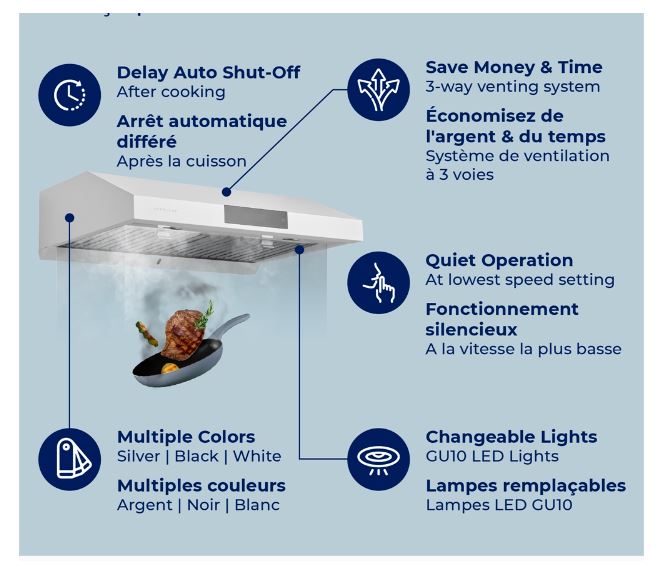 Bring a professional-grade range hood to your home kitchen and cook your favourite meals as often as you’d like without having to deal with noxious odours, greasy particles and stained cabinets. Backed by dual motors and powerful suction technology, this range hood is designed to make extracting odours, fumes and chemicals from your kitchen a breeze. With the easy-to-use buttonless system, you can cut down on clean-up time and keep your home smelling fresh with a few taps on the digital touch screen.