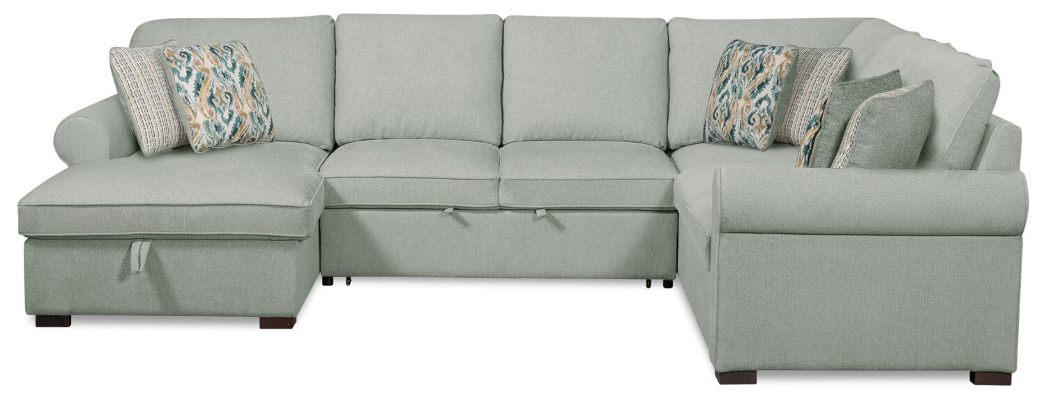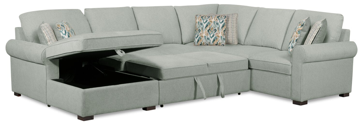 Scott Living Haven 3-Piece Left-Facing Chenille Fabric Sleeper Sectional with Storage Chaise - Seafoam Blue