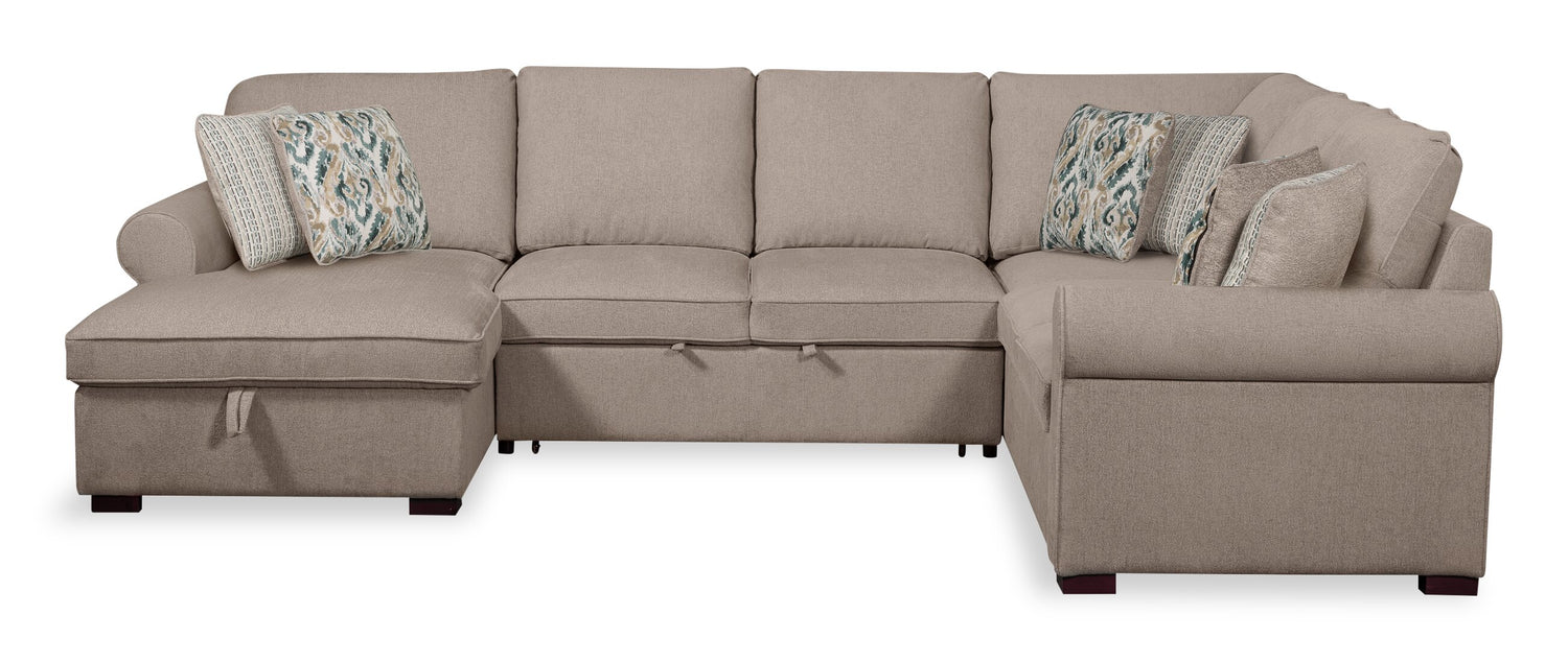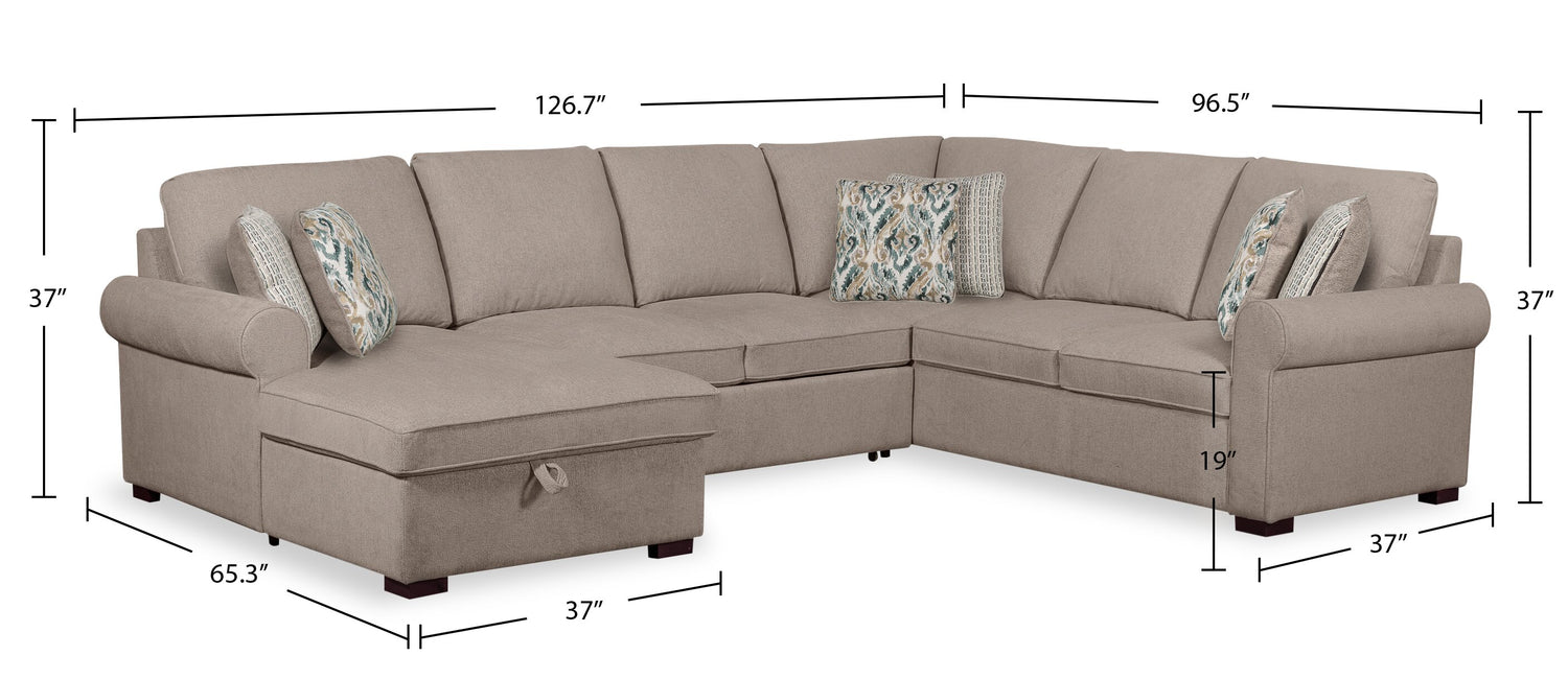 Scott Living Haven 3-Piece Left-Facing Chenille Fabric Sleeper Sectional with Storage Chaise - Taupe