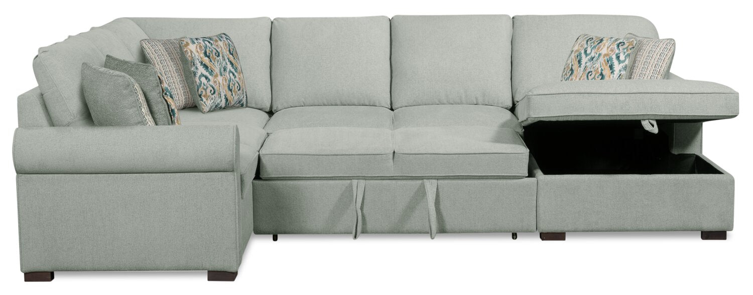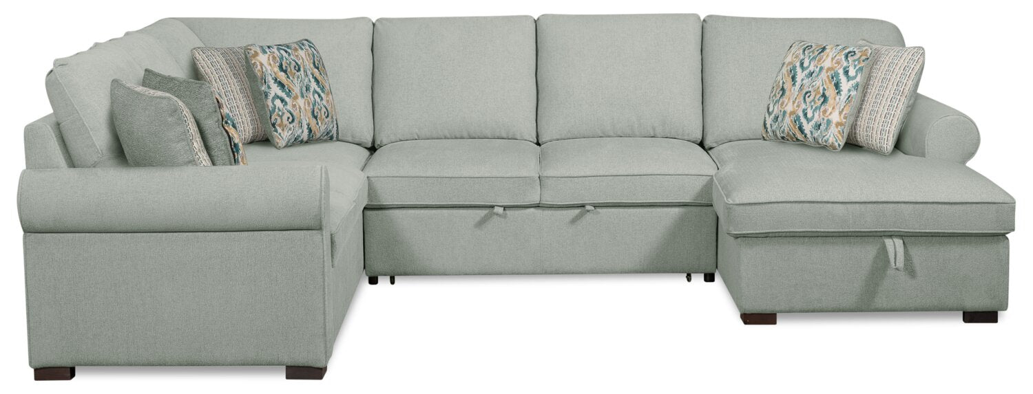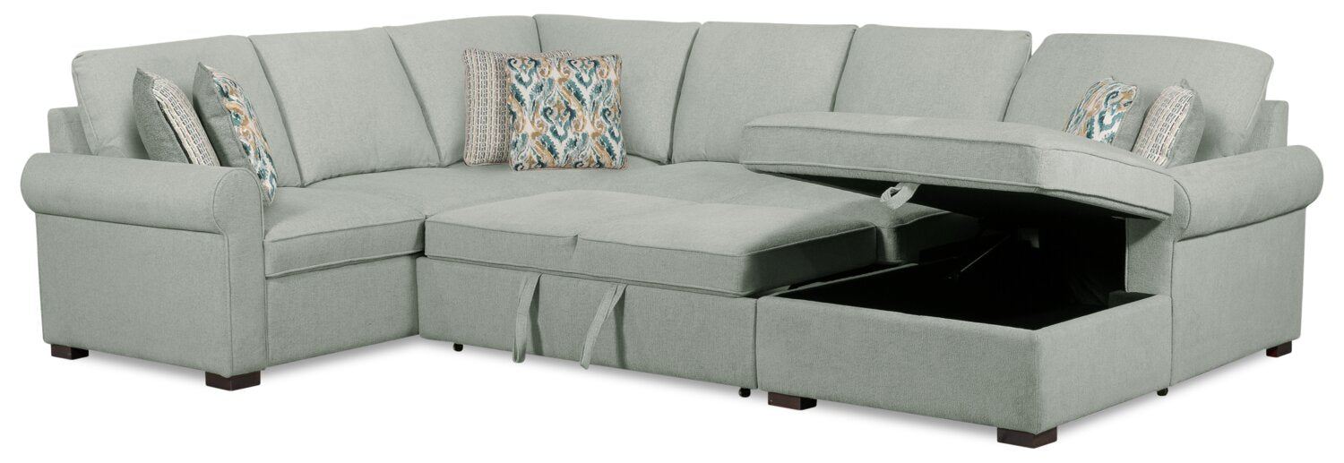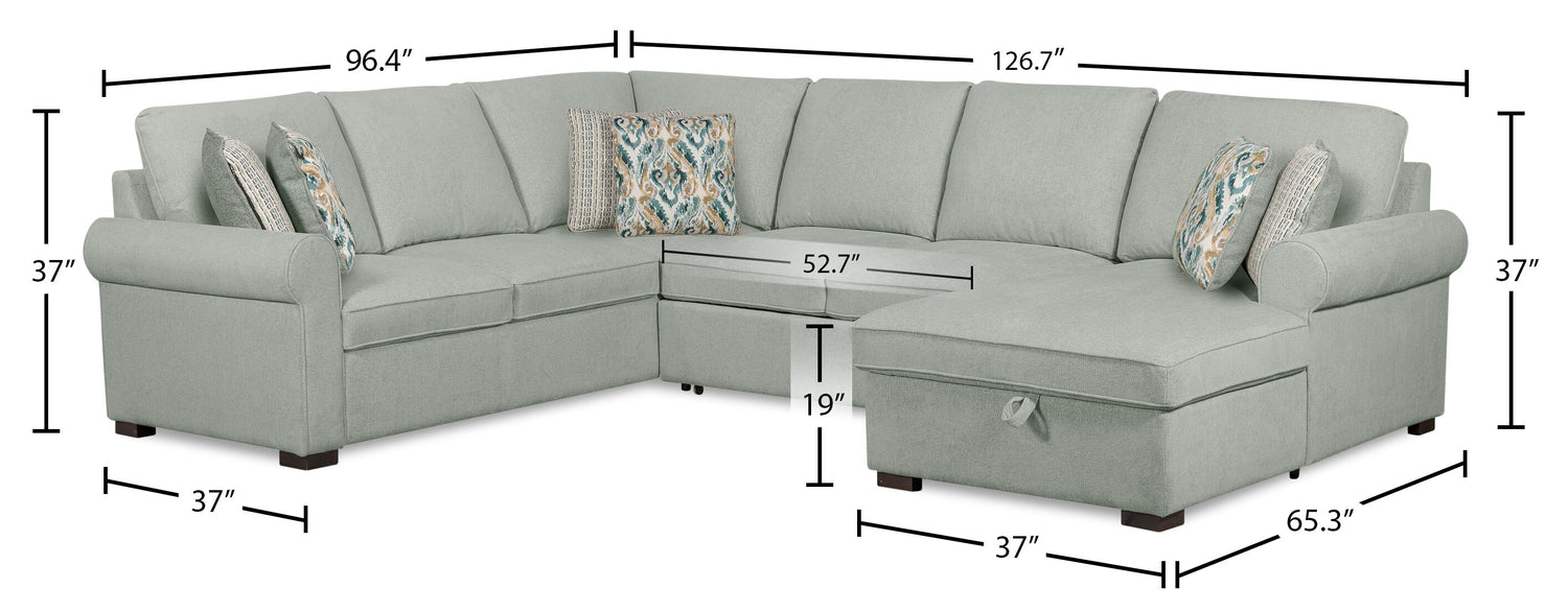 Scott Living Haven 3-Piece Right-Facing Chenille Fabric Sleeper Sectional with Storage Chaise - Seafoam Blue