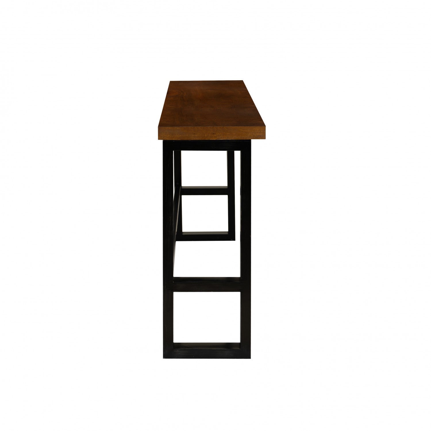 The combination of wood grain and aged metal texture allows this sofa table to add modern industrial details to your home. Pair this table with bar stools and place behind your sofa to provide additional table seating in your living room or den.