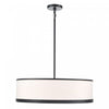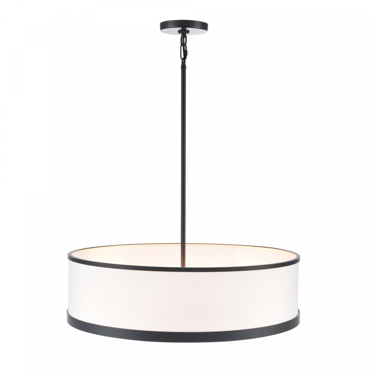 This elegant chandelier from the “high street” collection, designed by kevin kraemer, radiates understated elegance. The hardback linen shade, in a soft eggshell white hue, casts a warm, inviting glow, perfect for elevating any space. Encased in sleek black framing metalwork, the design balances contemporary charm with understated luxury. This model comes with extra rods for any height preference.