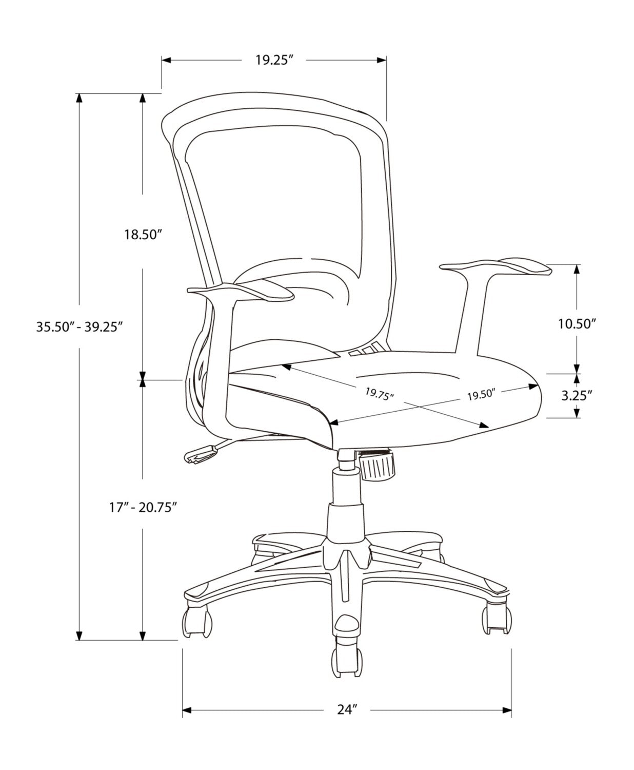 This Hobbs commercial-grade office chair has curves in all the right places to provide comfortable support. The wide backrest has an ergonomic shape that follows the contour of the spine to promote good posture, while the fixed armrests are grooved with a concave shape to better support the lower arms. Black mesh fabric covers the backrest and padded seat, which is wide and extra deep to offer a roomy feel. A lever underneath the seat allows you to adjust the chair height and tilt function to your preference. The seat swivels 360 degrees for added flexibility, and the black five-star base with casters lets you easily move around your workspace. With its streamlined style, this desk chair is ideal for a smaller office.