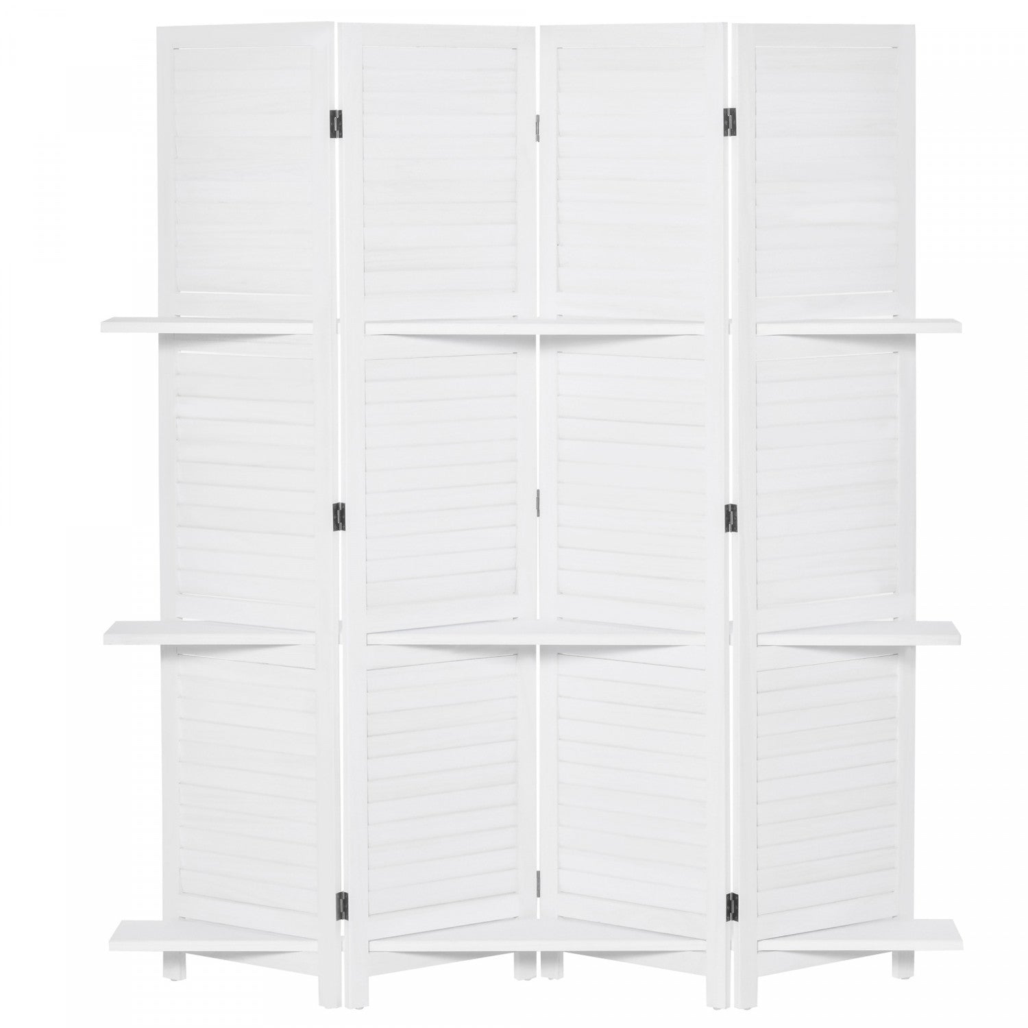 | Key Features | ●Four office divider panels provide ideal privacy ●Can block sunlight with opaque wood panels ●Blinds style for elegant design, can be used as a background ●Foldable design with 4 panels, easy to move and storage ●Including 3 shelves for added stability and extra space for storage ●Elevated feet with footpads for more air circulation and added stability ●Solid paulownia wood create a sturdy base for long time daily use ●No assembly required |