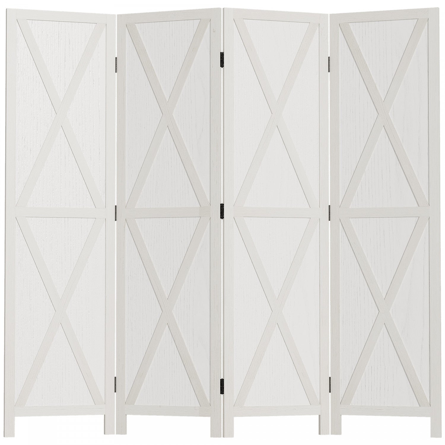 | Key Features | ●Great for creating a personal space or dividing up large rooms ●Folding design with 4 panels makes it easy to create a new look and saves space when stored ●Solid paulownia wood with X-shaped farmhouse patterns for solidity and a rustic feeling ●9 metal hinges provide stability and ensure smooth extending and retracting ●Elevated feet for improved air circulation ●No assembly required |