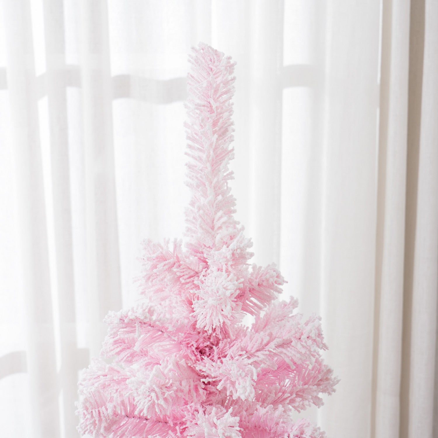 | Key Features | ●Natural and healthy appearance with a lovely pink hue ●Artificial snow sprayed for a wintry look ●Ideal pencil shape for small rooms or as a secondary tree ●Hinge construction and section design for quick and easy setup ●Branches open automatically ●Flame retardant branches for peace of mind ●Sturdy base for better stability ●Safe and enjoyable holiday experience |