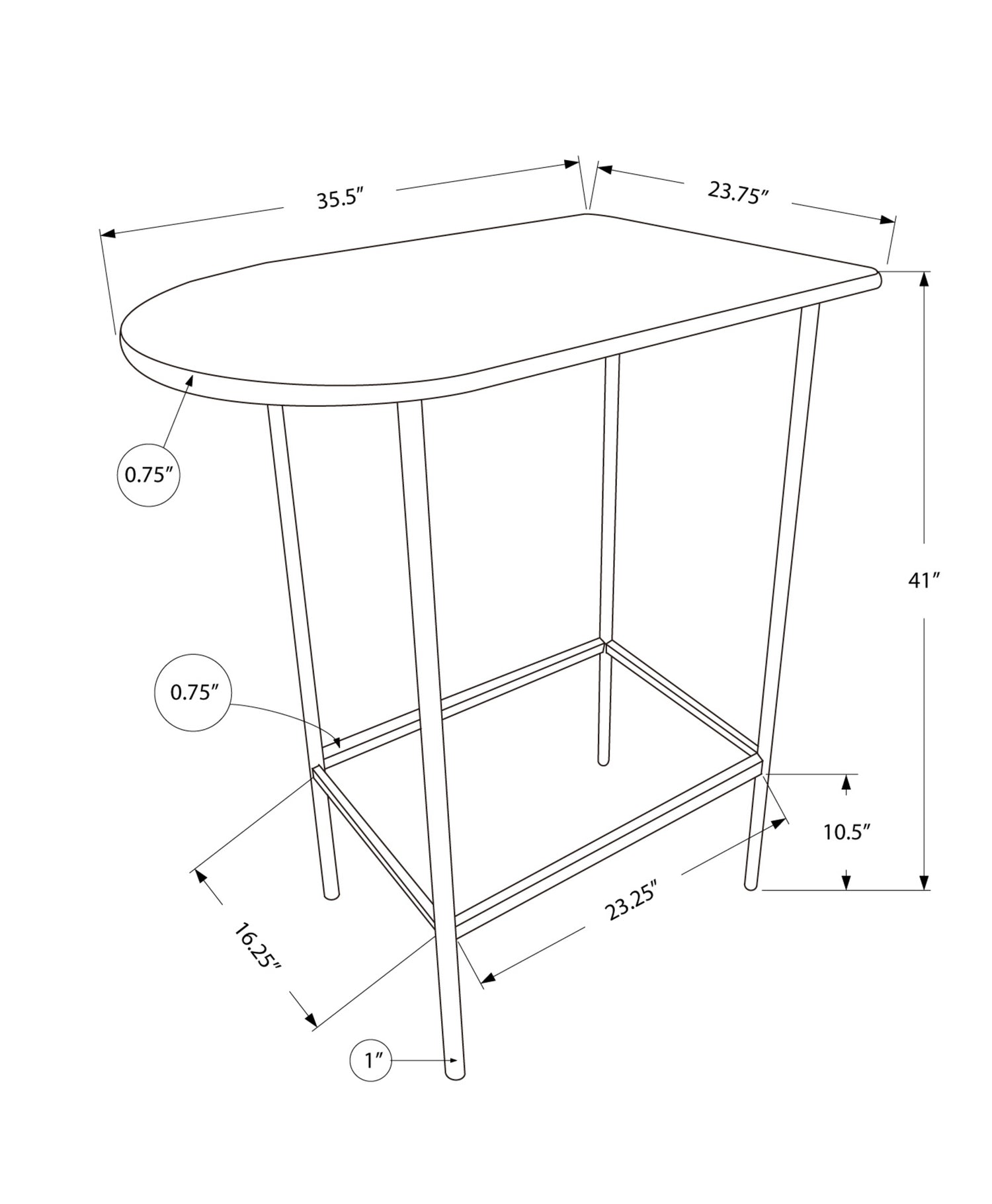 Embellish your dining area by placing this elegant-looking home bar. Showing off a contemporary half-moon design, the bistro table features sturdy charcoal metal legs and a smooth grey marble look table top. At the perfect height, the pub table is ideal for your favorite cocktail, snacks and even decorative items. This cozy bar height table fits nicely against a wall to save space, making it versatile in smaller homes, apartments or condos. Pair this beautiful bar table with matching stools to complete the look (bar stools not included).
