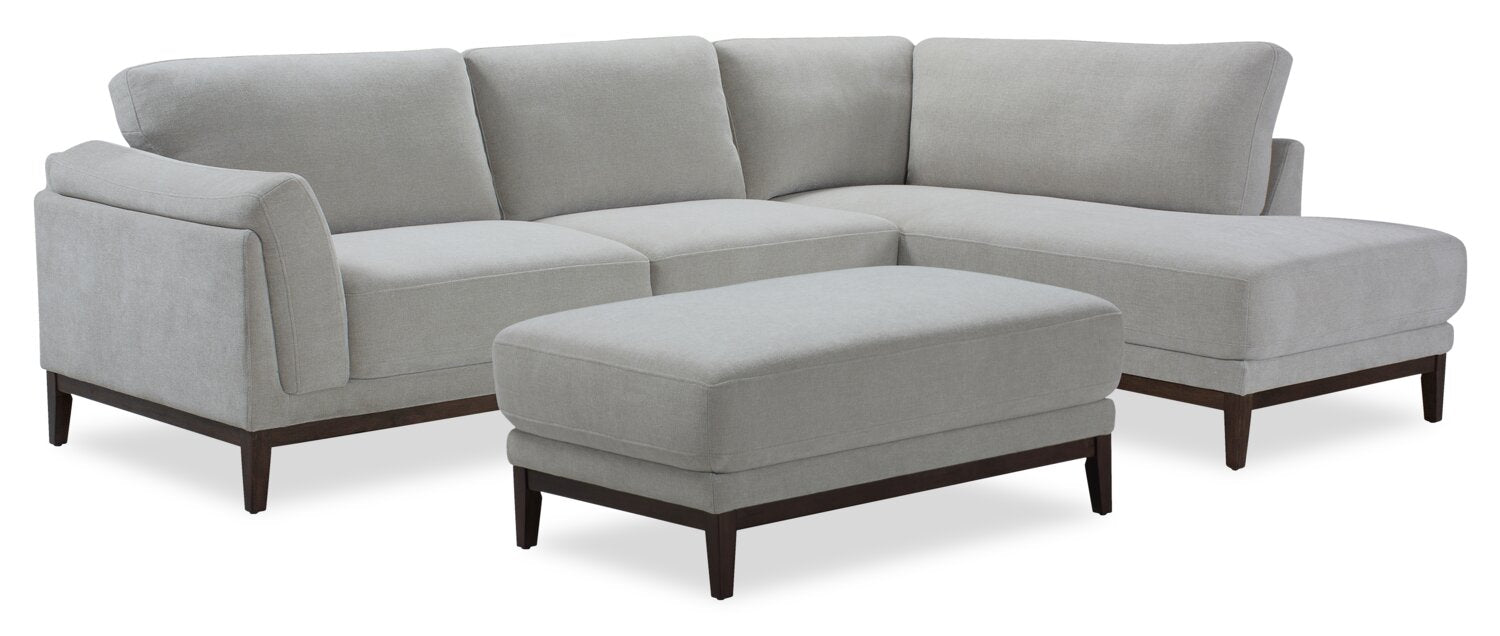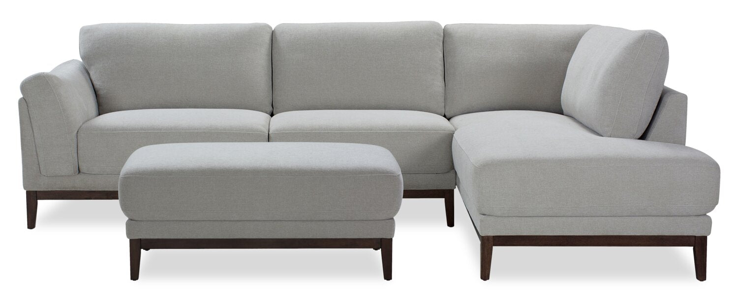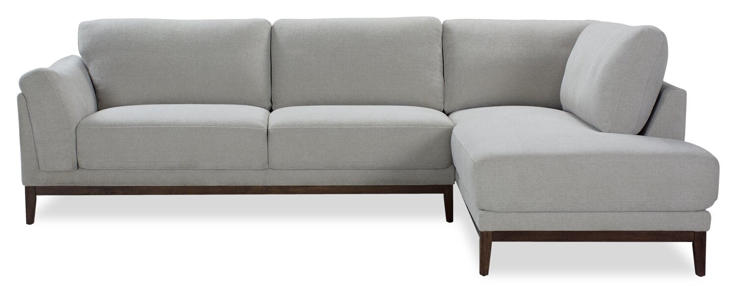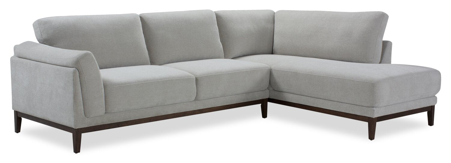 Horizon 2-Piece Right-Facing Fabric Sectional with Wood Base and Legs - Grey