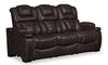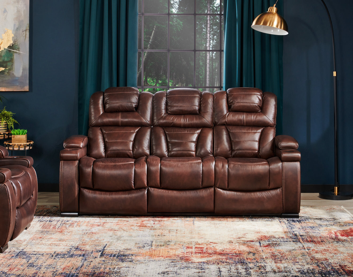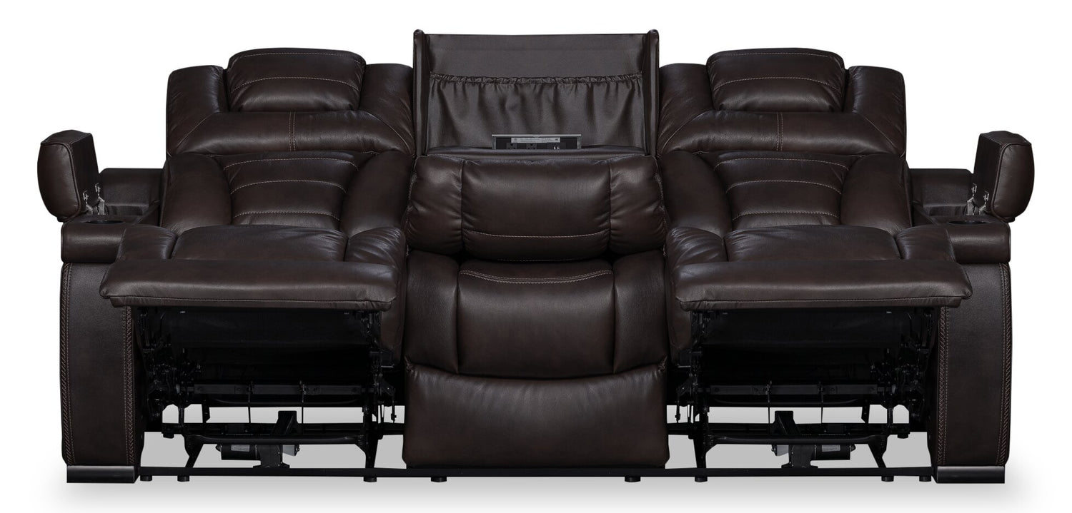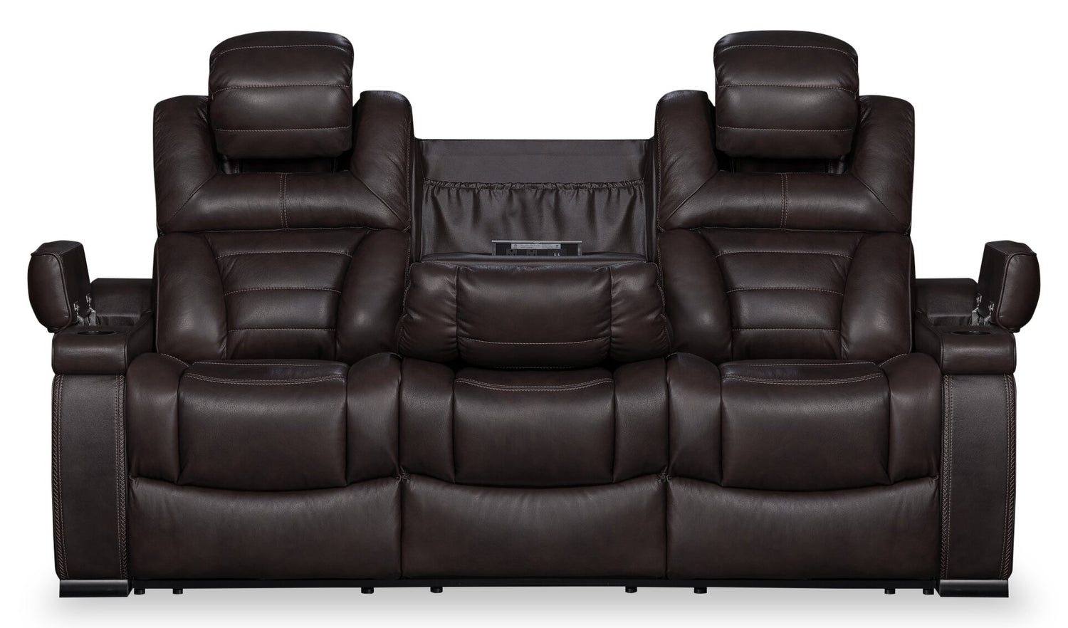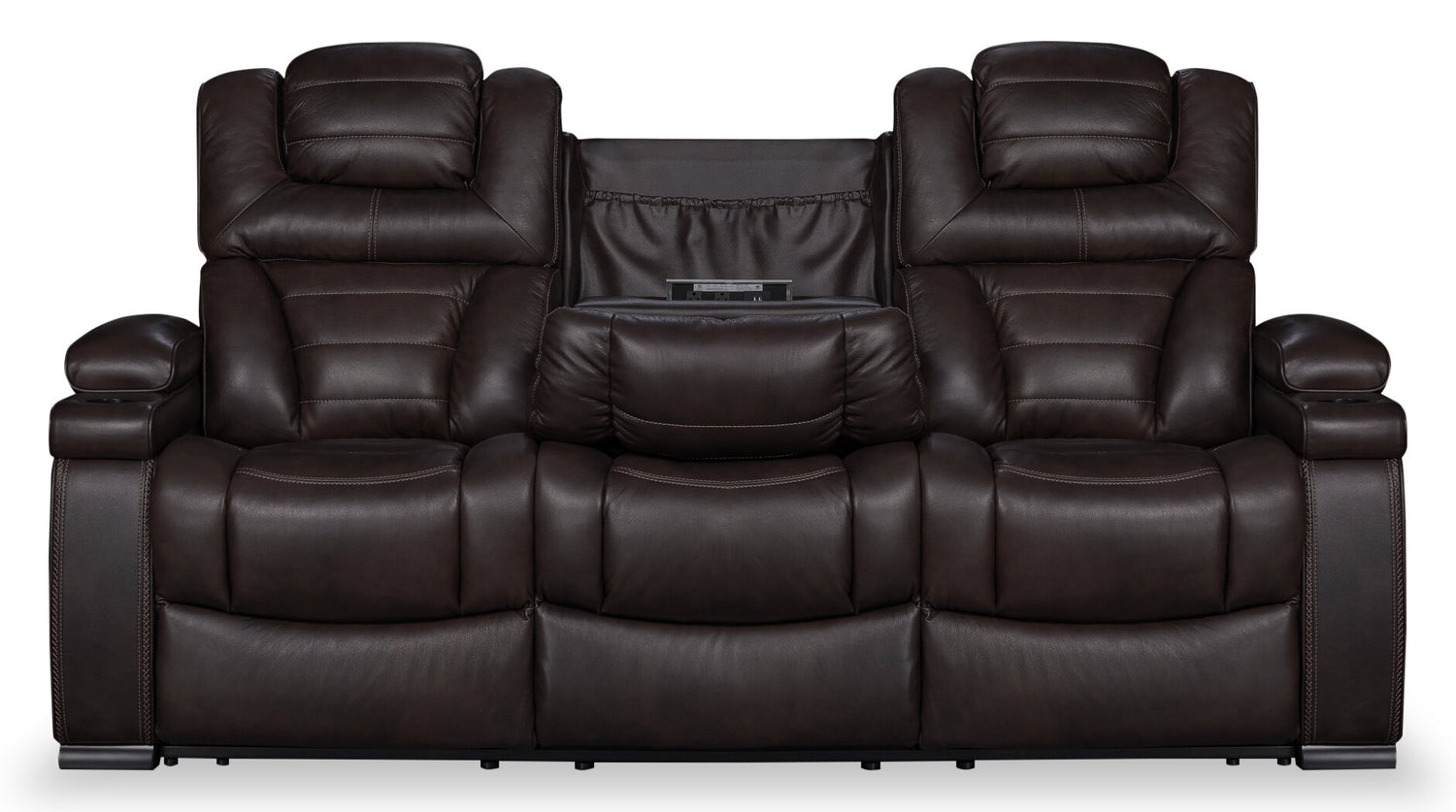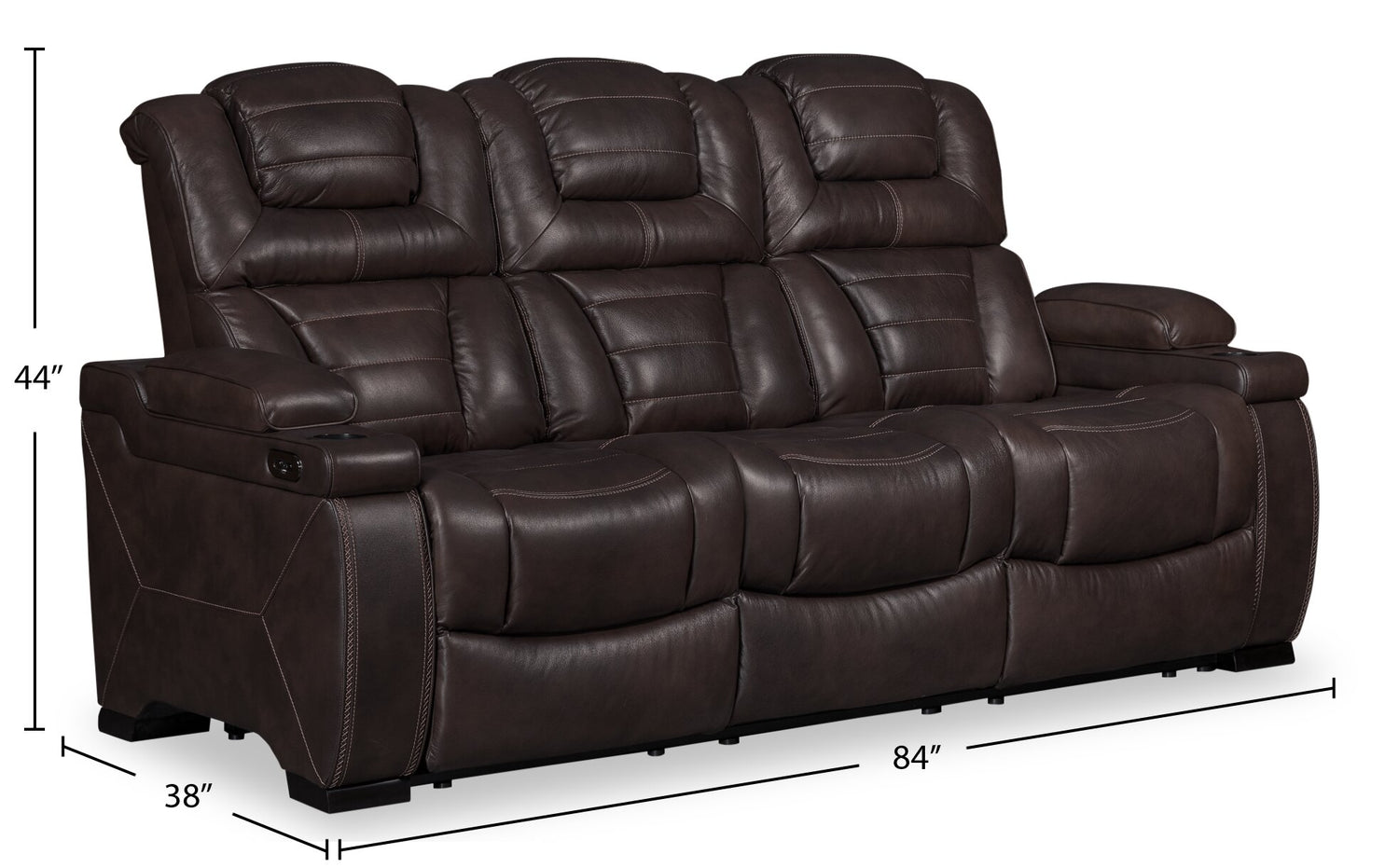 Make your lounging space feel luxurious with this Hugo power reclining sofa. Headrests and cushions are plump, thanks to the high-density foam packed in every nook and cranny of the seating area. As well, the entire seating area is covered in genuine leather for a chic look you'll enjoy showing off to friends and family. Use the power adjustment buttons in different ways – adjust your seat's angle, tilt your head up or down to see the TV, or do both until you're satisfied. Plus, cupholders and a secret centre console are ready and waiting to hold your tasty beverages.