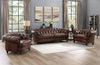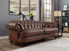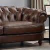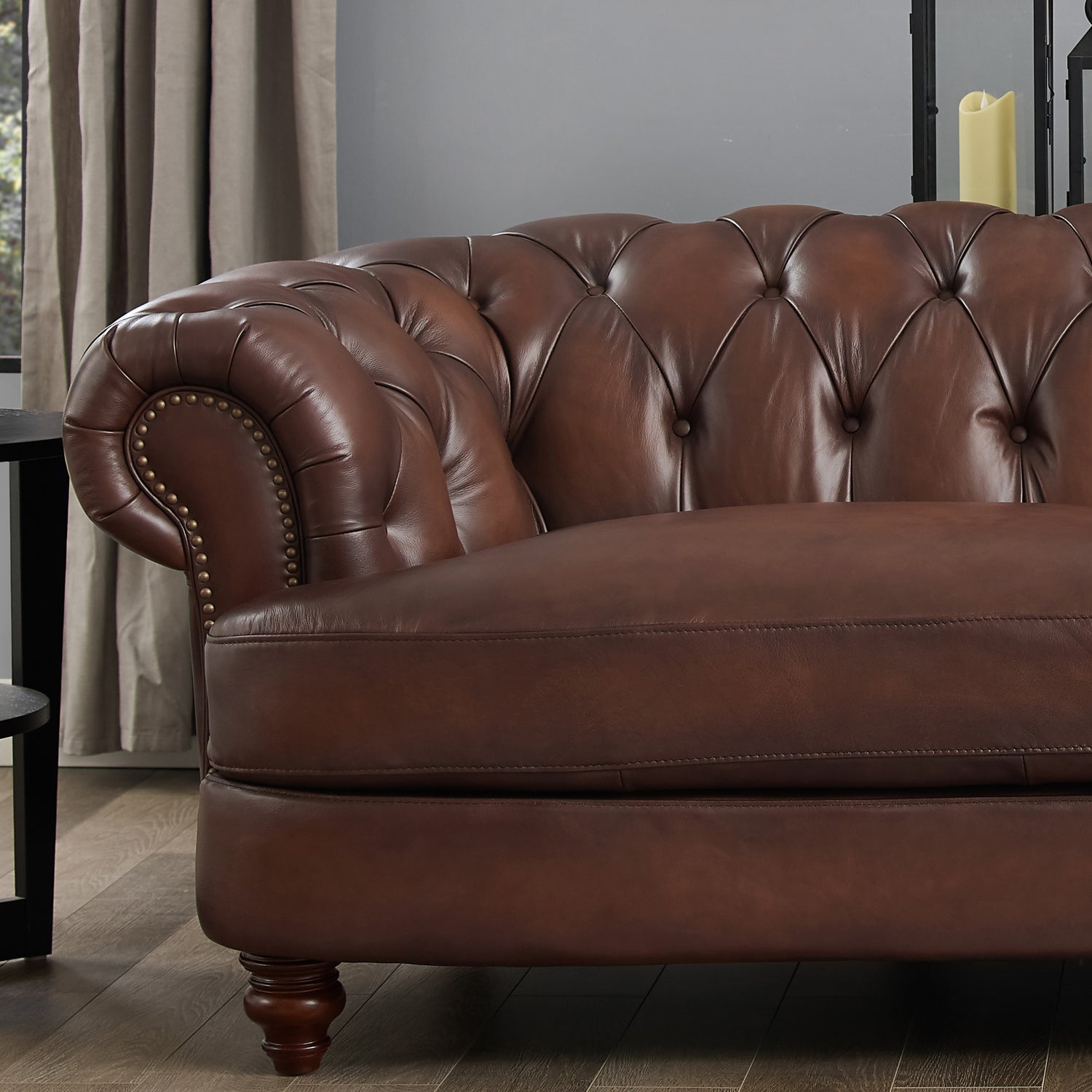 The serpentine front rail, hand applied bronze nail-head trim and solid wood turned bun feet add the perfect finishing touch to the Newport Top Grain leather collection. Luxurious multi-tone dark brown leather shows a subtle variation of light and dark areas giving the Brixton a polished and inviting appeal.