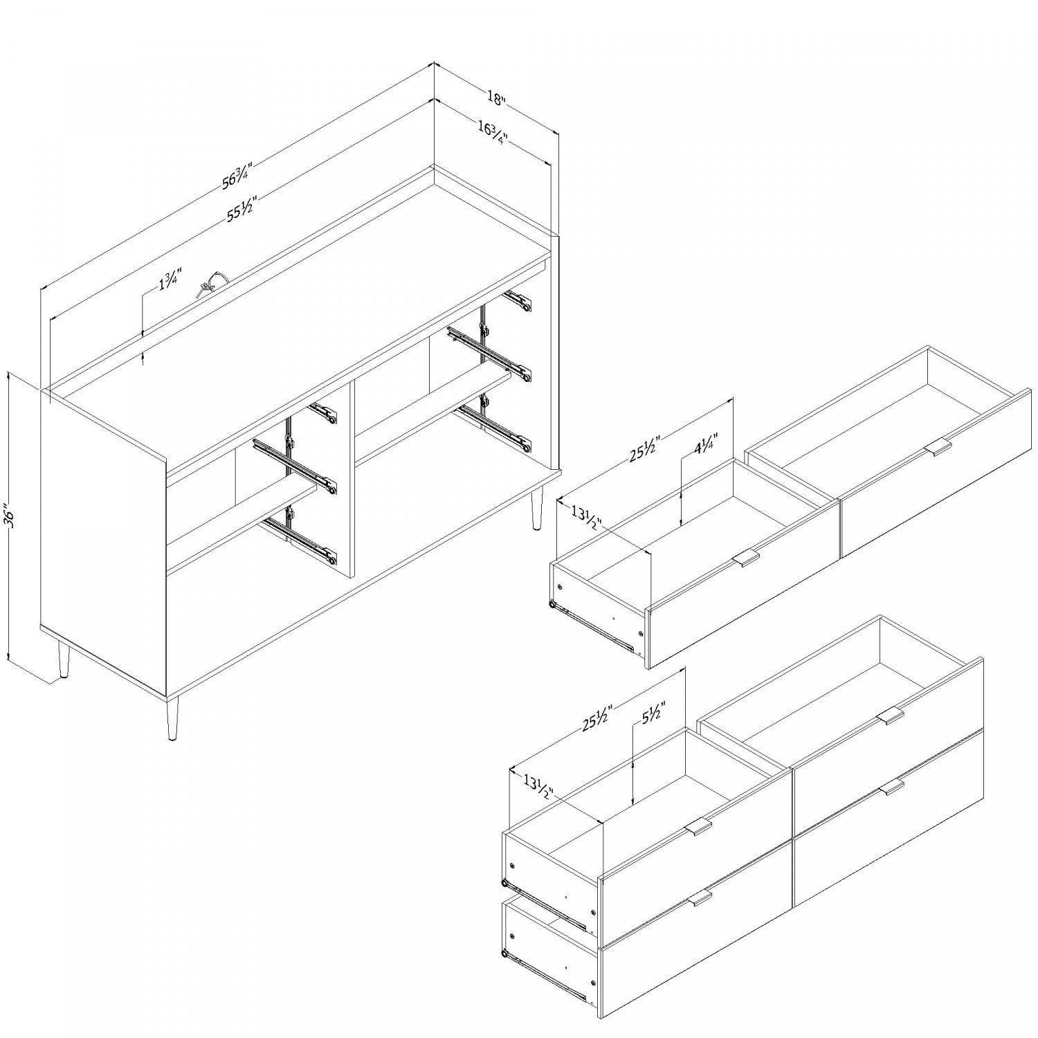 Width: 56.75" (144.1 cm) Height: 36" (91.4 cm) Depth: 18" (45.7 cm)
