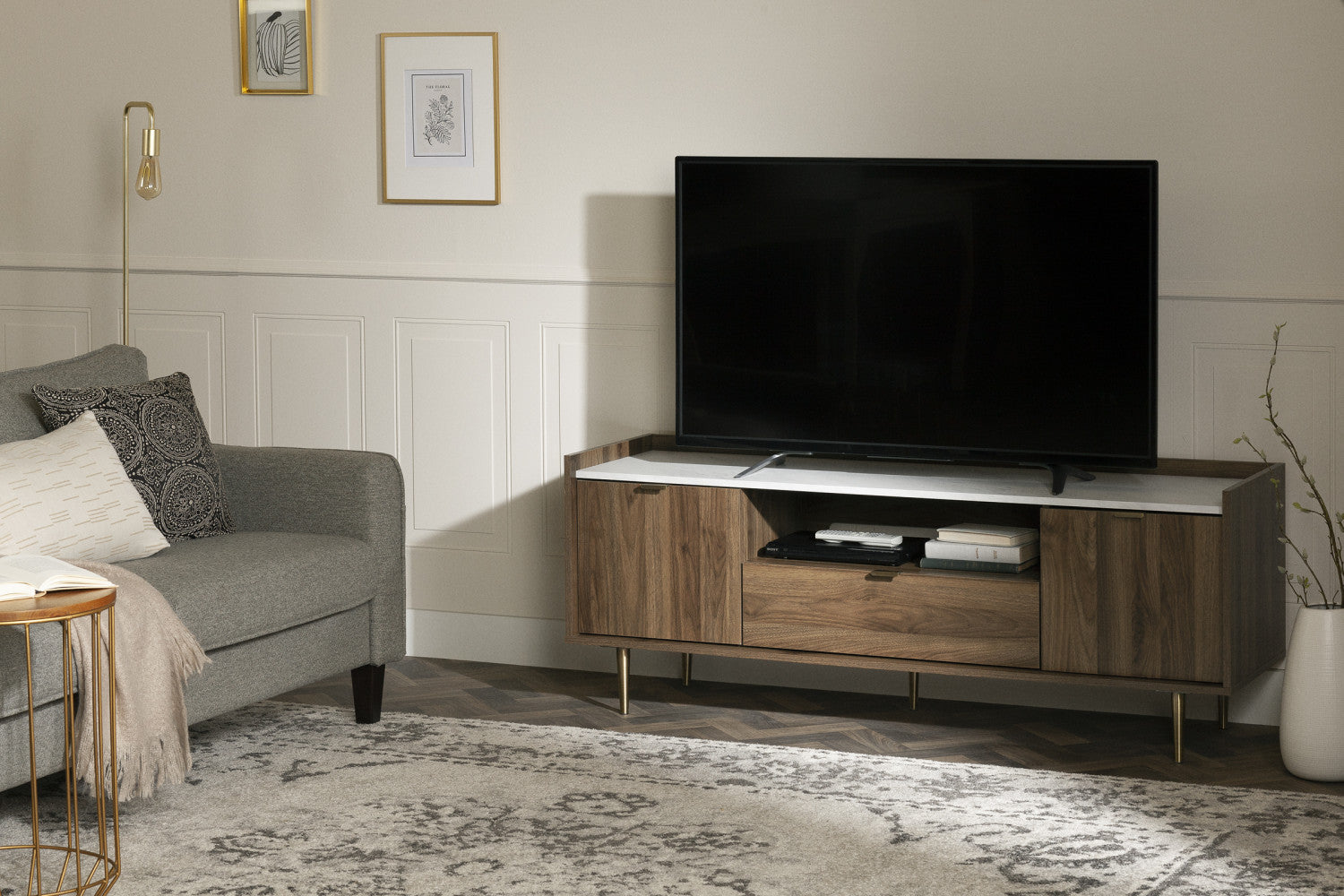 | Finish Colour | Natural Walnut and Faux Carrara Marble |