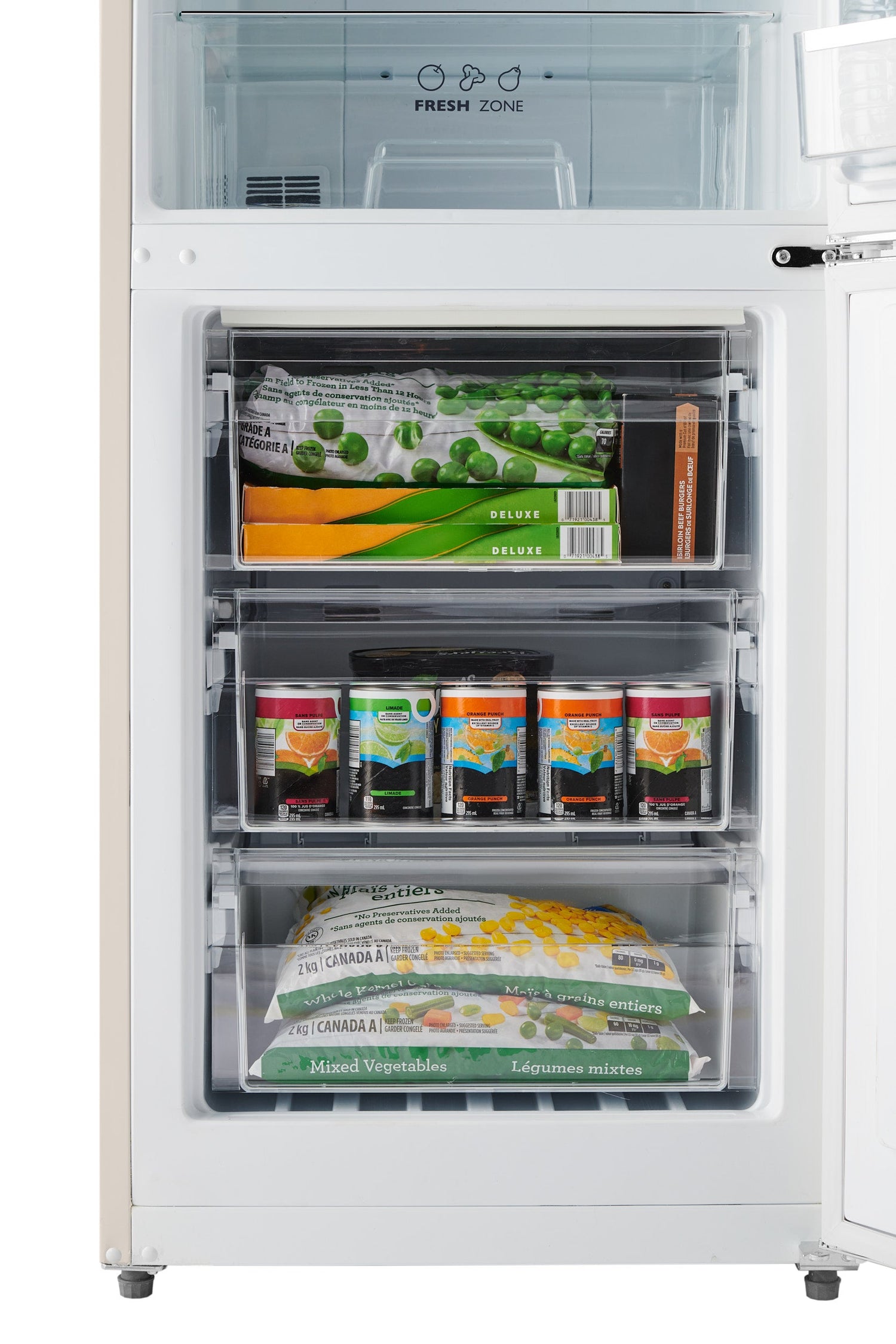 It's cool, it's stylish, it's fun. This retro-modern slim refrigerator has a surprising amount of adjustable space and square sides for side-by-side installation. With bright LED illumination, three safety glass shelves, a convenient frost-free top fresh food area, and a bottom freezer, the iio RM1 comes in gorgeous colour options to fit any decor. Truly where style meets function. This 11 cubic-foot Retro-Mod compact fridge offers a future-friendly blend of nostalgic design and modern angles, packed with the latest technology. The electronic controls are easy to reach and easy to use, allowing you to quickly activate the Fast Cool feature that rapidly chills the refrigerator compartment and your freshly-stocked groceries. Frost-free and with Multiflow 360-degree technology circulates cool air more efficiently around every shelf, through every drawer, and over every surface, keeping your food at the ideal temperature. A large bottom freezer, bright LED lighting, and three rollout freezer drawers all enable even the smallest space in your home to reflect your luxury style. This tall, skinny refrigerator comes with innovative features including chrome retro handles, a super fresh zone, and is ENERGY STAR certified. It's perfect for tight spaces and is a slim refrigerator that's perfectly sized for a small family home.