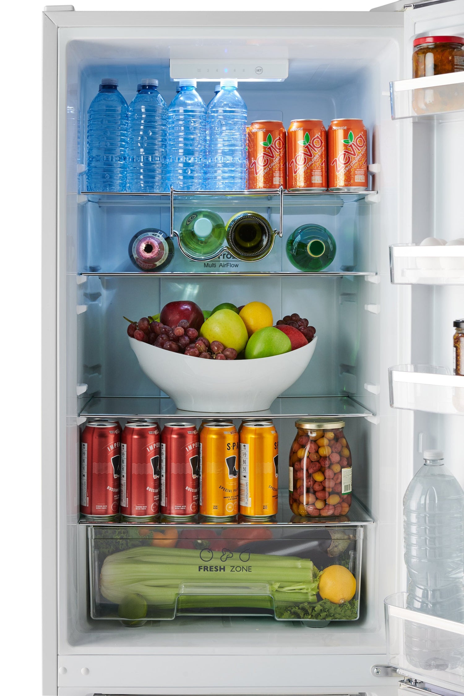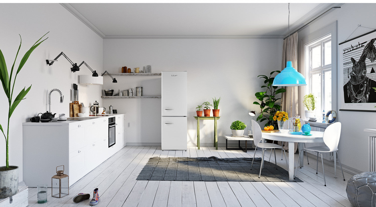 It's cool, it's stylish, it's fun. This retro-modern slim refrigerator has a surprising amount of adjustable space and square sides for side-by-side installation. With bright LED illumination, three safety glass shelves, a convenient frost-free top fresh food area, and a bottom freezer, the iio RM1 comes in gorgeous colour options to fit any decor. Truly where style meets function. This 11 cubic-foot Retro-Mod compact fridge offers a future-friendly blend of nostalgic design and modern angles, packed with the latest technology. The electronic controls are easy to reach and easy to use, allowing you to quickly activate the Fast Cool feature that rapidly chills the refrigerator compartment and your freshly-stocked groceries. Frost-free and with Multiflow 360-degree technology circulates cool air more efficiently around every shelf, through every drawer, and over every surface, keeping your food at the ideal temperature. A large bottom freezer, bright LED lighting, and three rollout freezer drawers all enable even the smallest space in your home to reflect your luxury style. This tall, skinny refrigerator comes with innovative features including chrome retro handles, a super fresh zone, and is ENERGY STAR certified. It's perfect for tight spaces and is a slim refrigerator that's perfectly sized for a small family home.