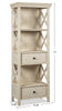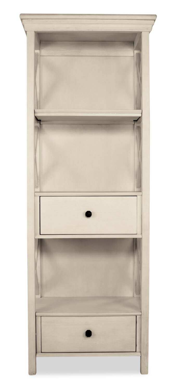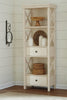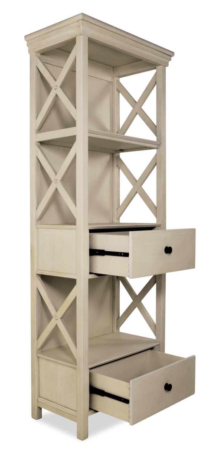 Add vintage farmhouse style to tonight’s dinner with this stunning Ilsa display tower. A solid Asian hardwood frame is finished with oak and acacia veneers for a design that's both sturdy and eye-catching. Three tall open shelves let you show off your style with space for dinnerware, home accessories, photos and so much more. Two spacious drawers offer a handy place for storing placemats or cutlery. With a chic antique white finish, this hutch will make dinner a meal to remember. Bon appétit.
