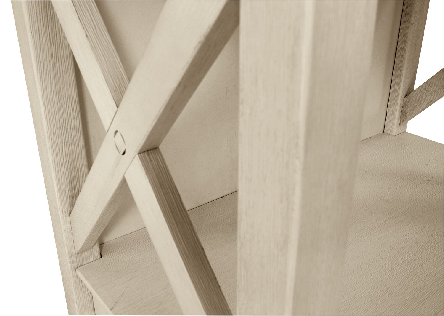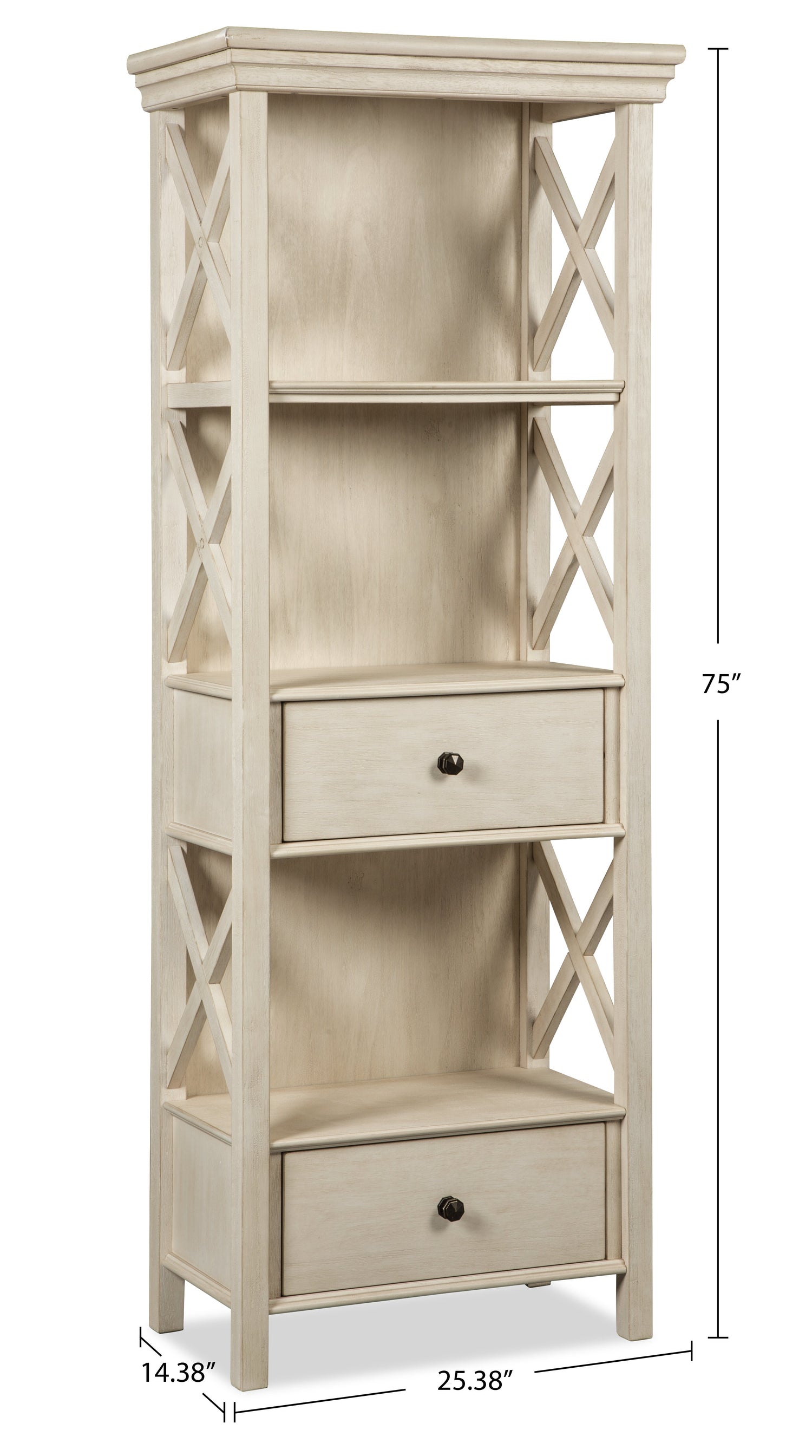 | Accent Details | Crossed latticework decorates the sides of the open shelves while crown moulding accentuates the top. |