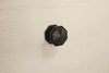 | Hardware | Black hexagonal knobs decorate the front of the drawers. |