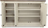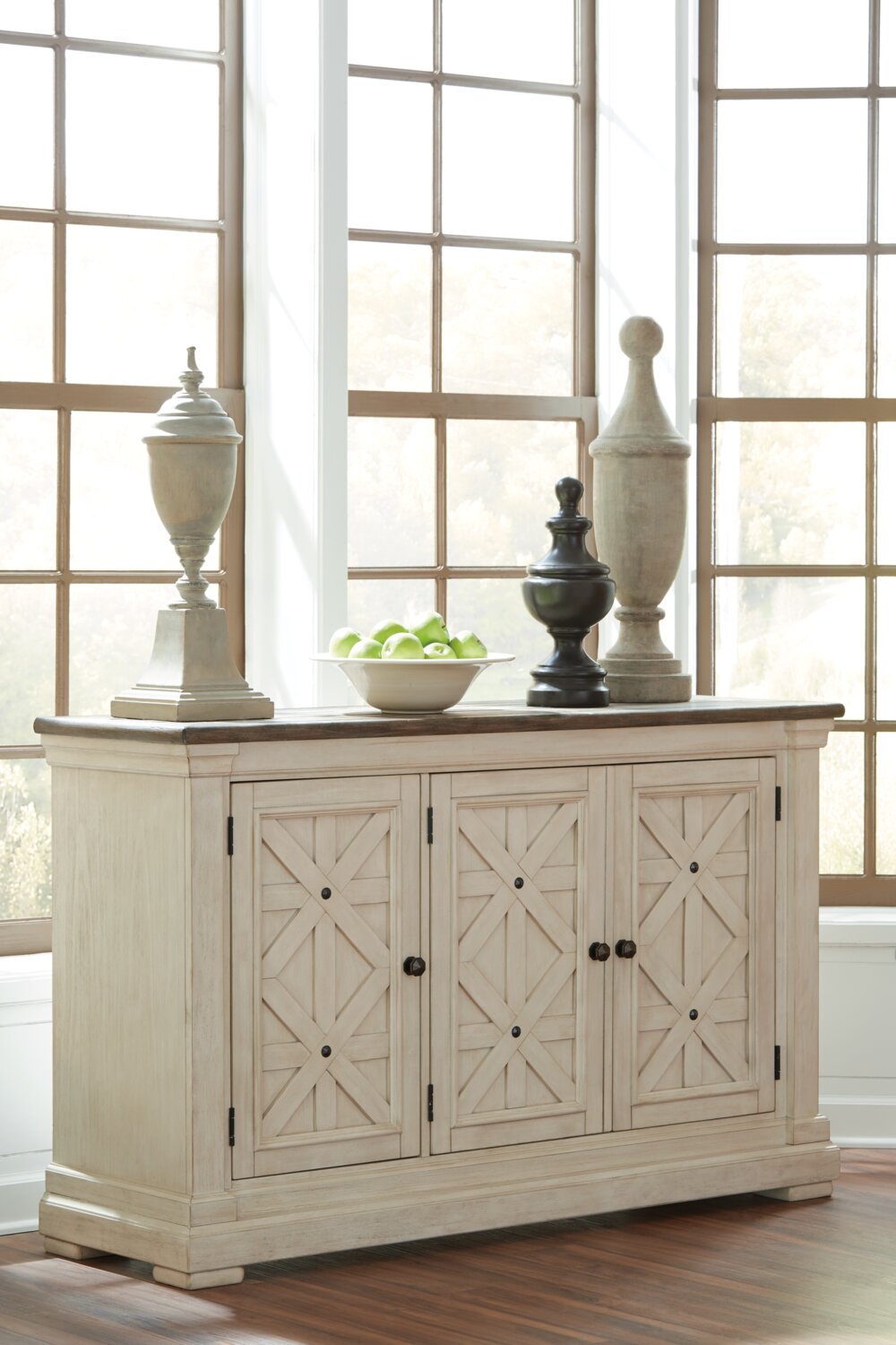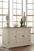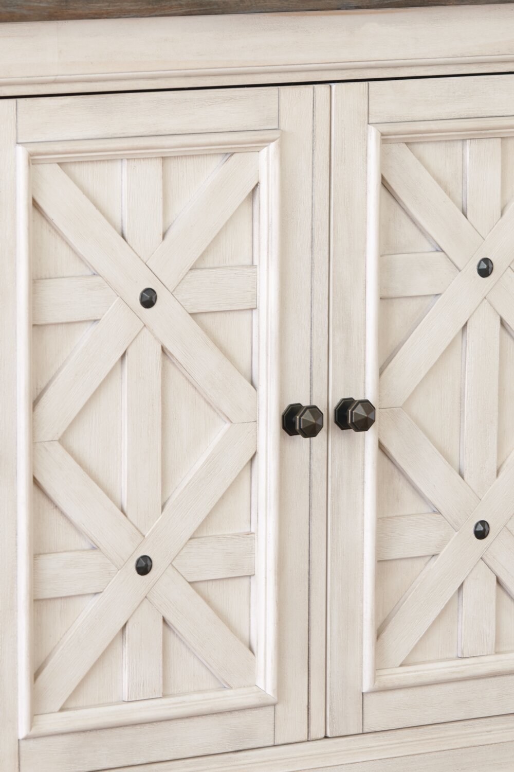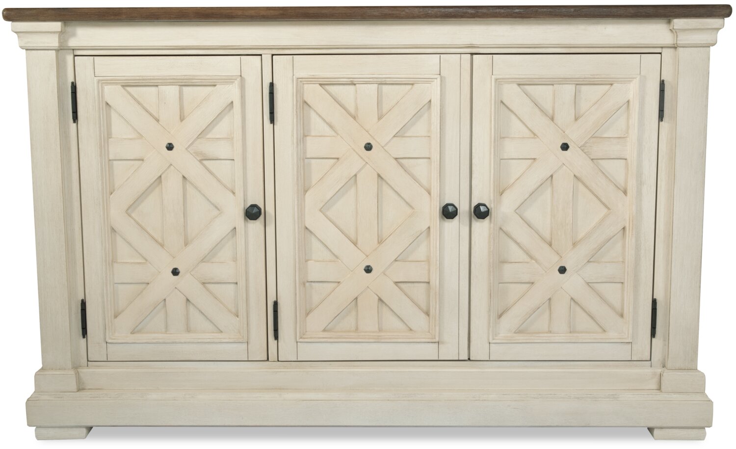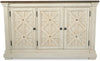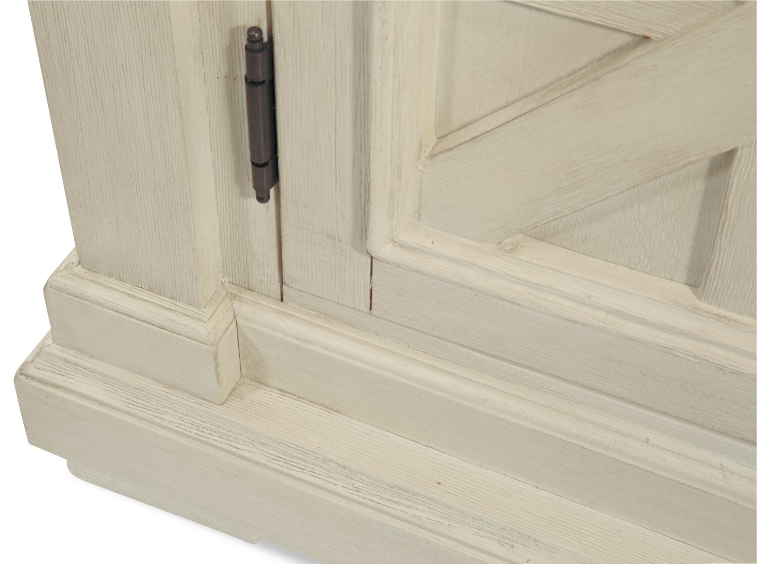 Add vintage farmhouse style to tonight’s dinner with this stunning Ilsa server. A solid Asian hardwood frame is topped with oak and acacia woods for an eye-catching, two-toned design. Delicate daisy-patterned latticework on the front panels adds a gentle touch of traditional country charm. Open up the cabinet doors to reveal four open shelves inside – easily adjustable to fit anything from the largest of pans to the most delicate of china. With a chic antique white finish, this server will make dinner a meal to remember. Bon appétit.