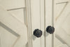 | Hardware | Black hexagonal knobs decorate the front of the cabinets. |