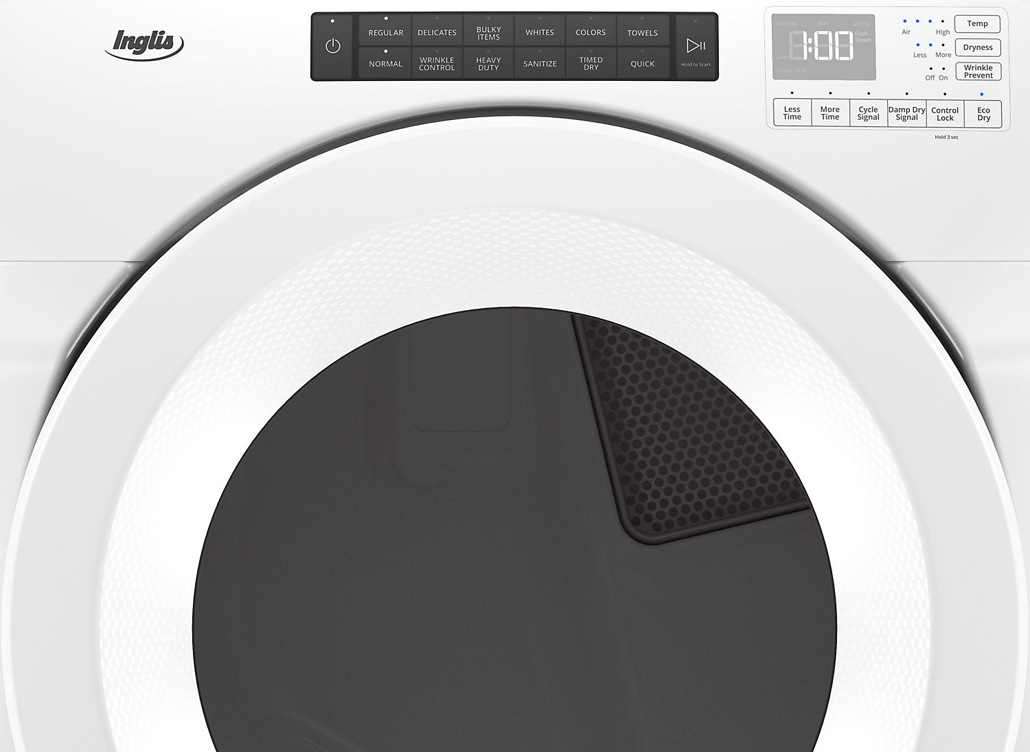 Dry your largest loads faster with this front-loading electric dryer from Inglis. Available exclusively at The Brick, this ENERGY STAR® certified dryer works hard to get the job done without wasting natural resources and saving money on the utility bills. Choosing the perfect cycle is simple with intuitive touch controls, or you can also customize up to 36 of your own cycles to suit whatever you throw inside. Advanced Moisture Sensing ends the cycle at just the right time to help prevent over-drying and promote ideal fabric care.