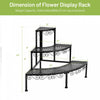 | Additional Information | Material: Iron Color: Black Overall Dimension: 24" Lx 24" Wx 23.5" H Bottom Tier Shelf Using Size: 7.87"x 7.87" (WXH) Middle Shelf Using Size: 7.87"x 7.87" (WXH) Top Shelf Using Size: 7.87"x 7.87" (WXH) Please refer to the picture to get more size information Item Weight: 10.5 lbs Package includes: 1x Fan-shaped plant stand |