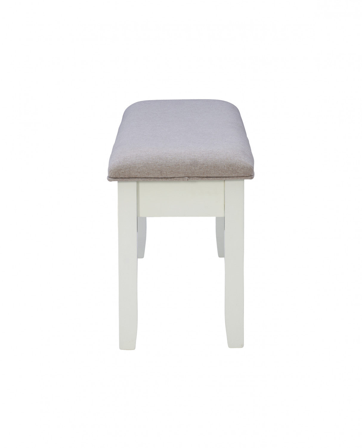 This functional storage bench is a beautiful complement to almost any room in your home. Not only can it go in your hallway, bedroom or living room, but it can also be paired with a dining table for extra seating. It opens to reveal hidden storage and a soft close hinge for easy access to your blankets, gloves, and other accessories. The comfortable, upholstered cushion features a solid light grey fabric made from a crosshatching construction giving it a heathered effect. As an added bonus, this fabric is performance grade, meaning it is made to resist and release stains, moisture, and odors. This item pairs perfectly with the matching side chair. Some assembly required.