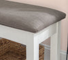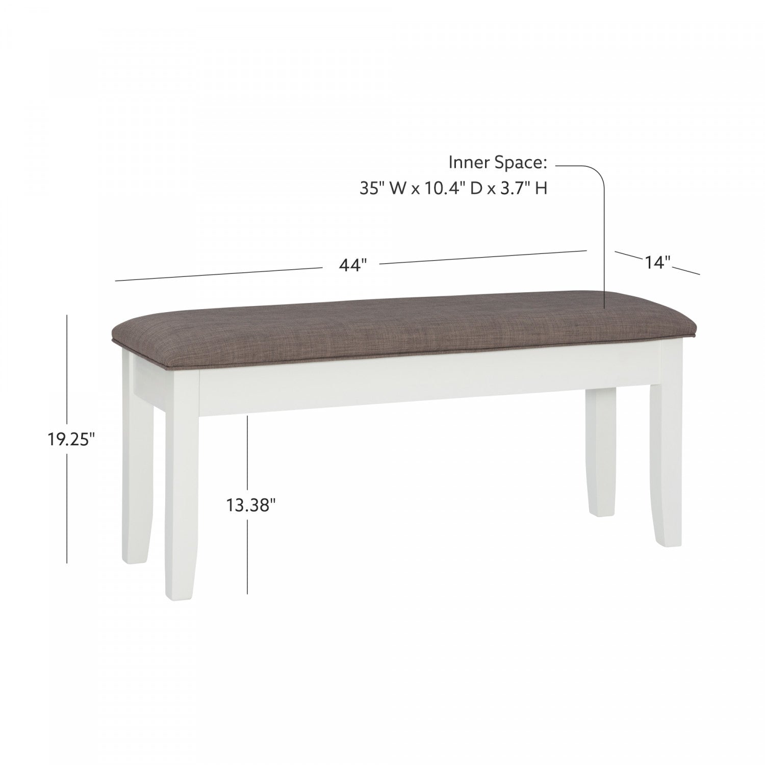 This functional storage bench is a beautiful complement to almost any room in your home. Not only can it go in your hallway, bedroom or living room, but it can also be paired with a dining table for extra seating. It opens to reveal hidden storage and a soft close hinge for easy access to your blankets, gloves, and other accessories. The comfortable, upholstered cushion features a solid rustic taupe fabric made from a crosshatching construction. This item pairs perfectly with the matching dining table and side chair. Some assembly required.