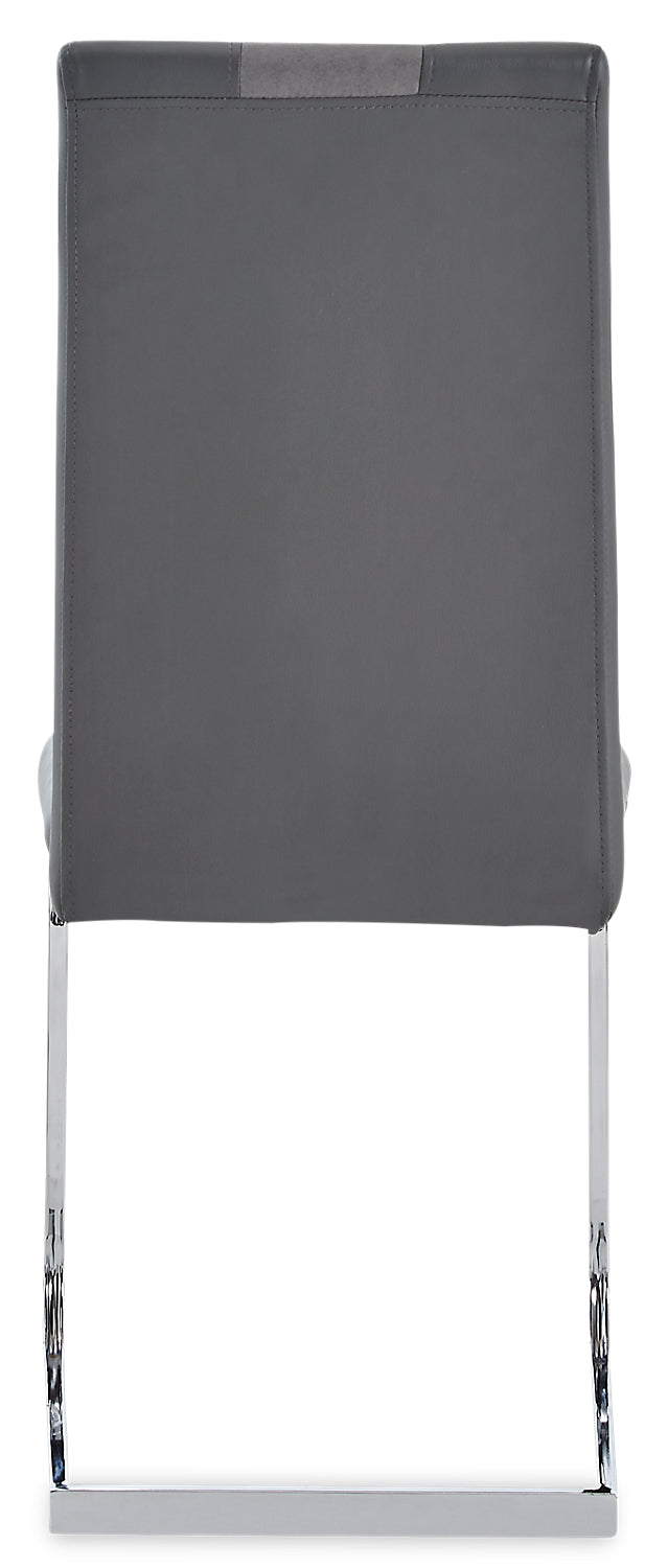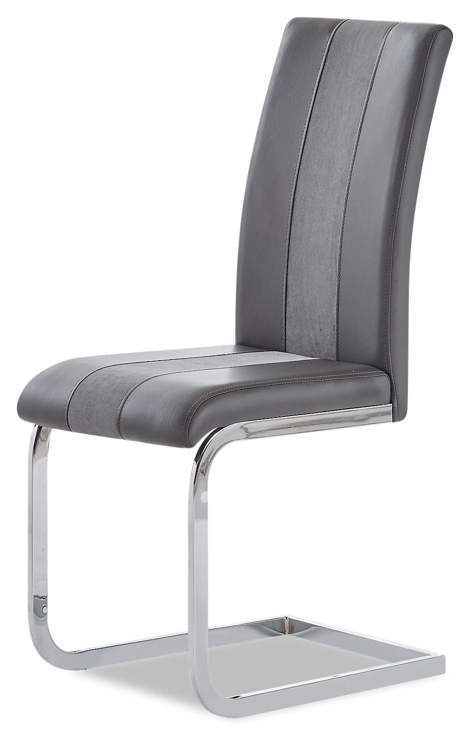 | Accent Details | A pair of ovals made from grey and white wood makes up the pedestal of the table. A lighter stripe of grey fabric runs down the centre of the chair. |