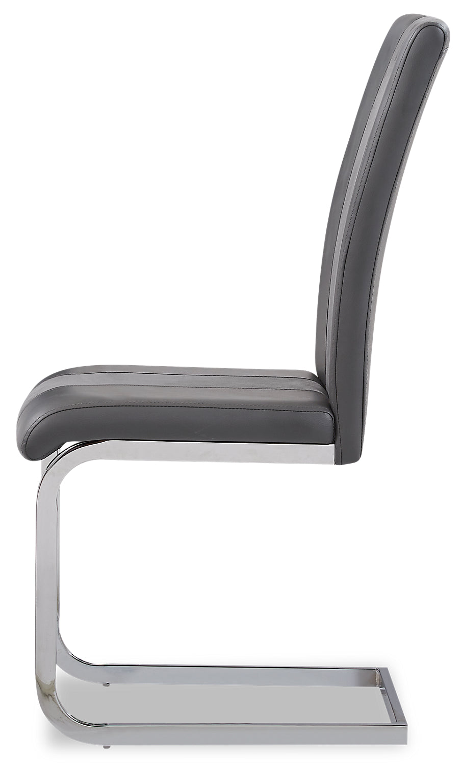 Shake up your dining room expectations with this strikingly modern Jaye five-piece dining table. A sheet of clear, durable tempered glass rests on a pair of two-tone wooden ovals in place of a central column. Finished in white and grey MDF wood, these open ovals add a splash of modern design to your room while keeping your dishes generously supported. Faux leather wraps the chairs’ seats and backrests with a look that contrasts light and dark grey tones. High-density foam makes sure you'll stay comfortable from appetizers through dessert. Invite the Jaye in for dinner, and make your dining space the talk of the town.